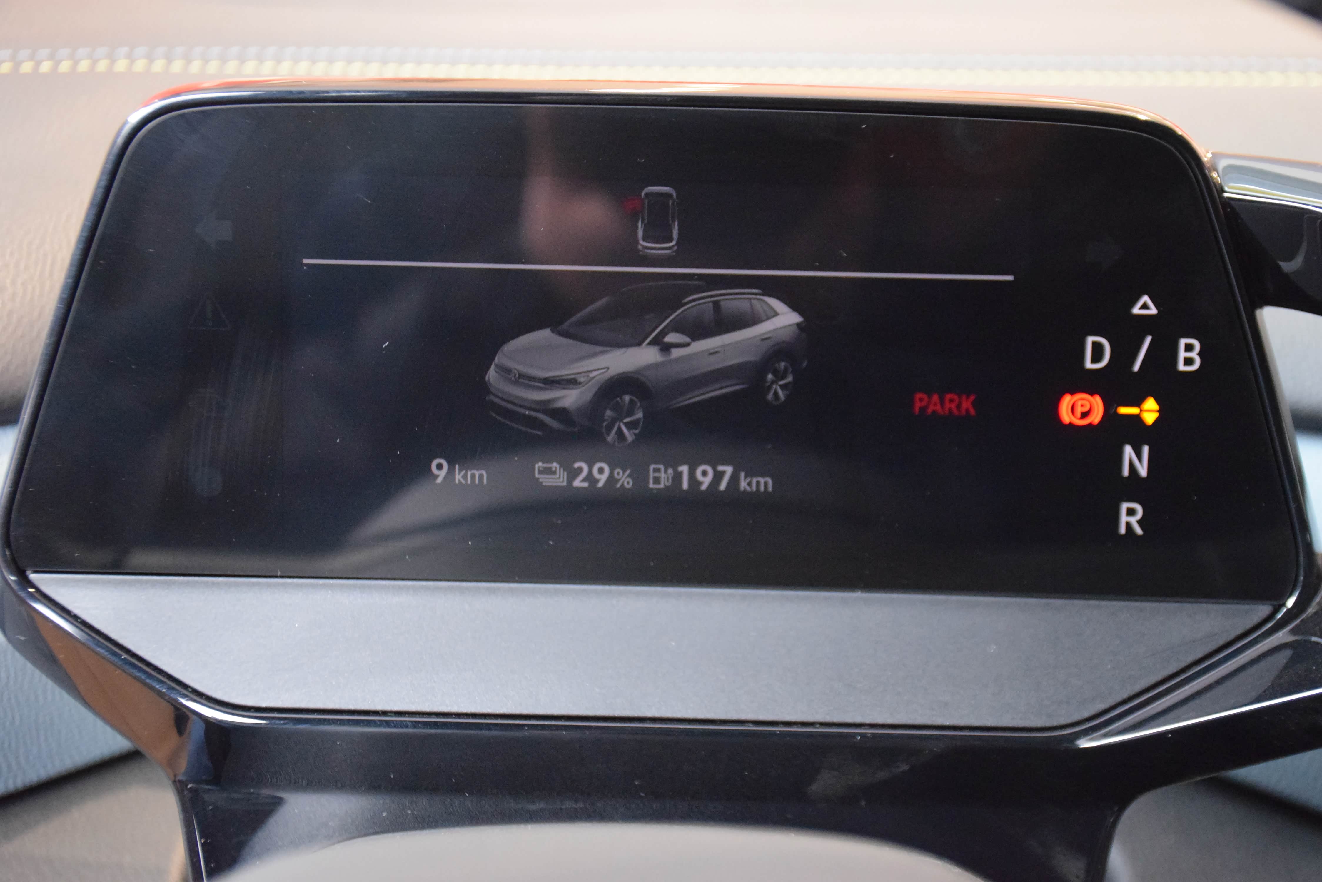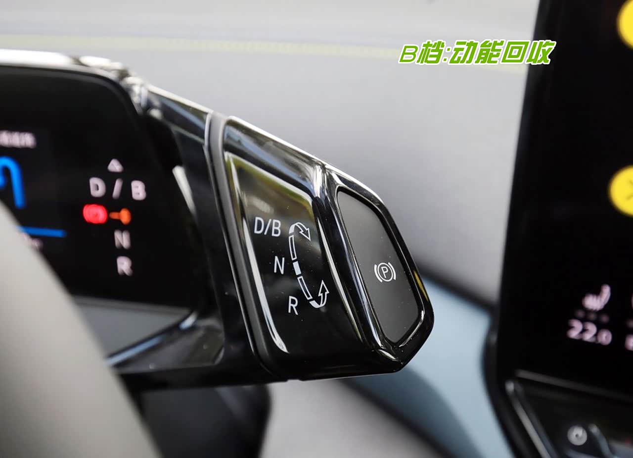 上汽大众ID.4 X的换挡手柄位于仪表盘的右侧,十分小巧,换挡逻辑简单明了,“拧一拧”即可,手刹位于手柄的侧面。