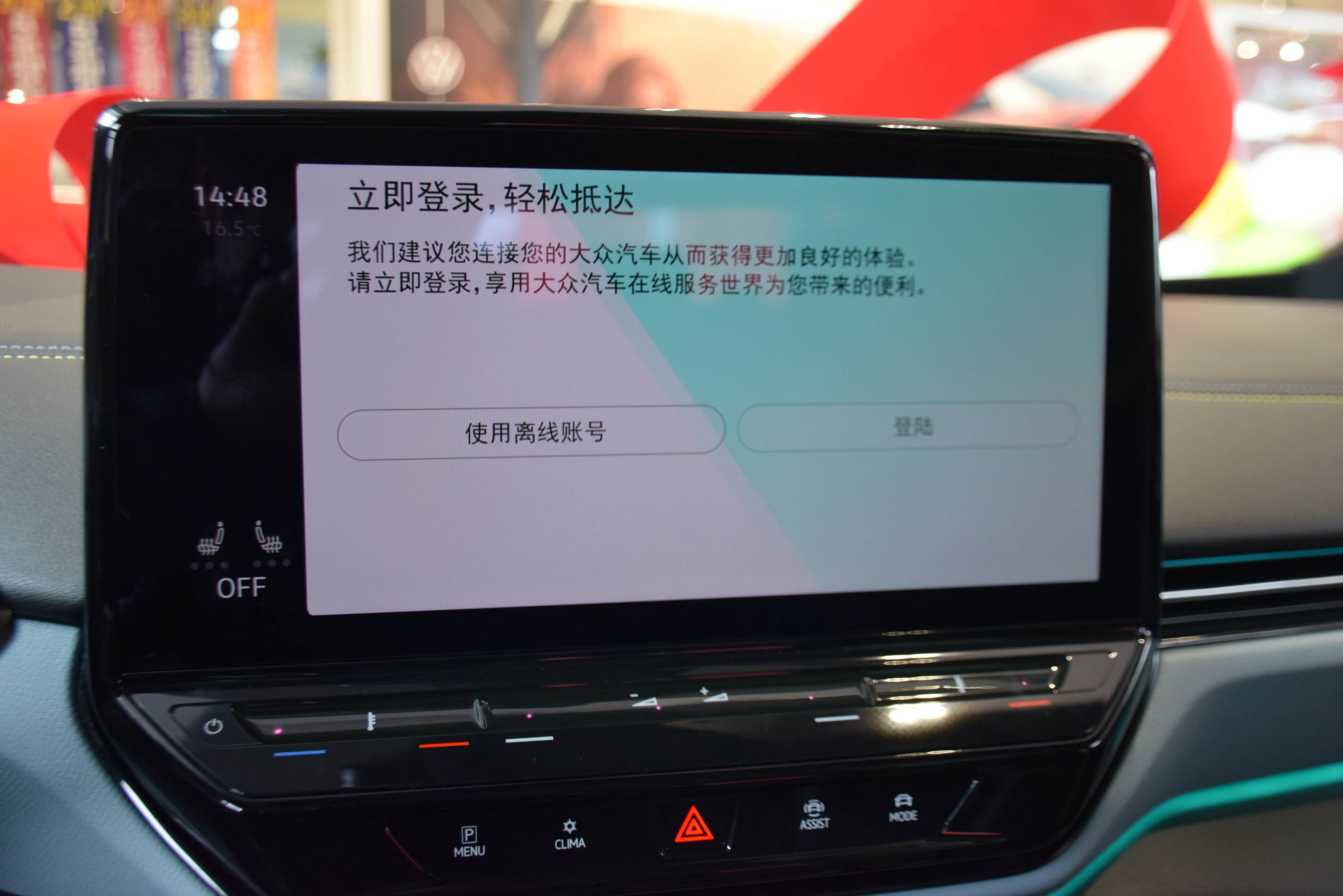 进入上汽大众ID.4 X的车内,会有一种“清新脱俗”的感觉,无论布局还是配色,都很轻快,12英寸中控液晶触屏在闪光灯的映射下依然有不错的显示效果,5.3英寸的液晶仪表盘虽然尺寸不大,但内饰中那一丝的未来感正是源于此处。