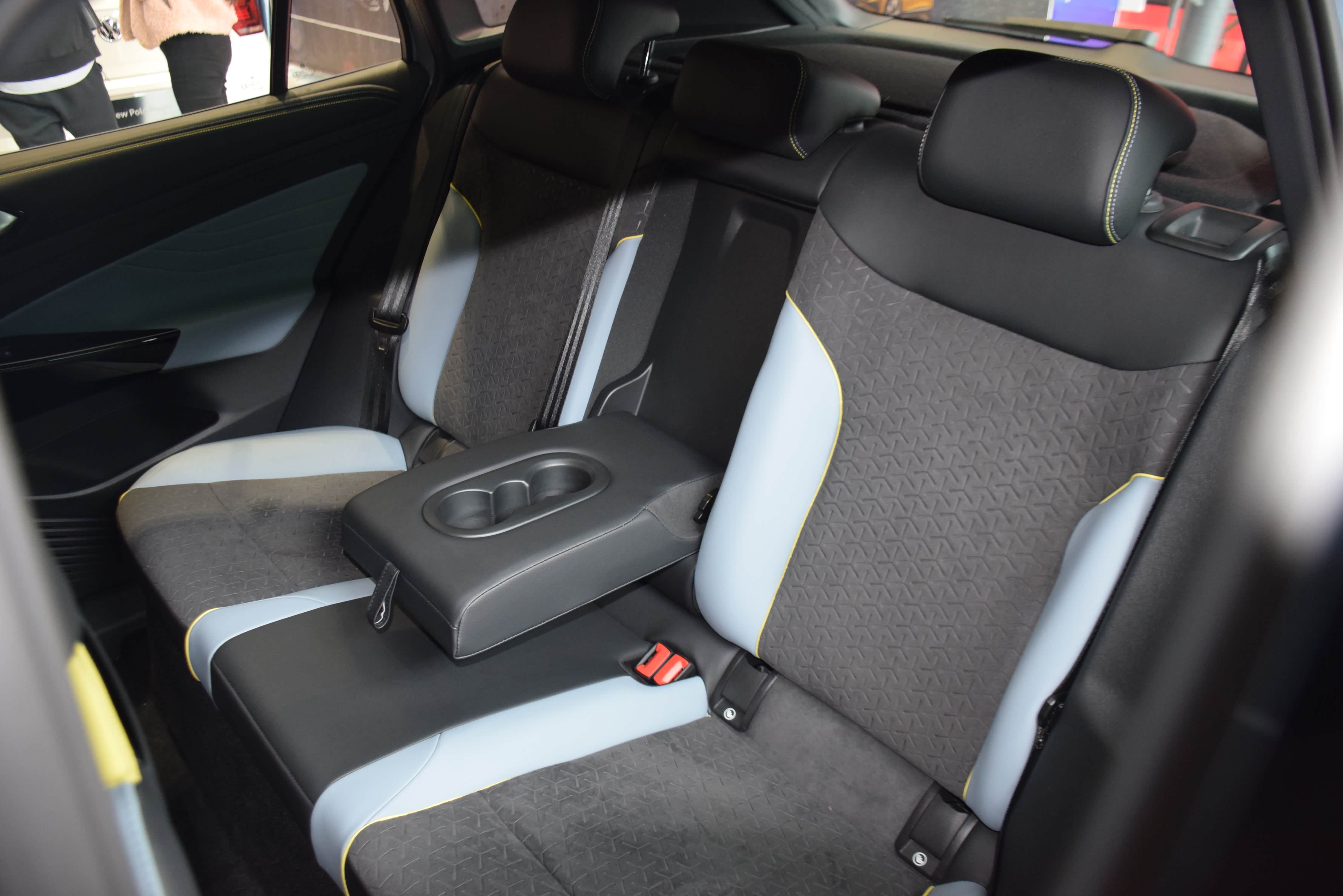 上汽大众ID.4 X标配了双区自动空调、后出风口、车内PM2.5过滤装置和空气净化器,后排出风口下方的两个USB接口是从极智长续航版才配备的,实拍车型还支持前排无线充电。