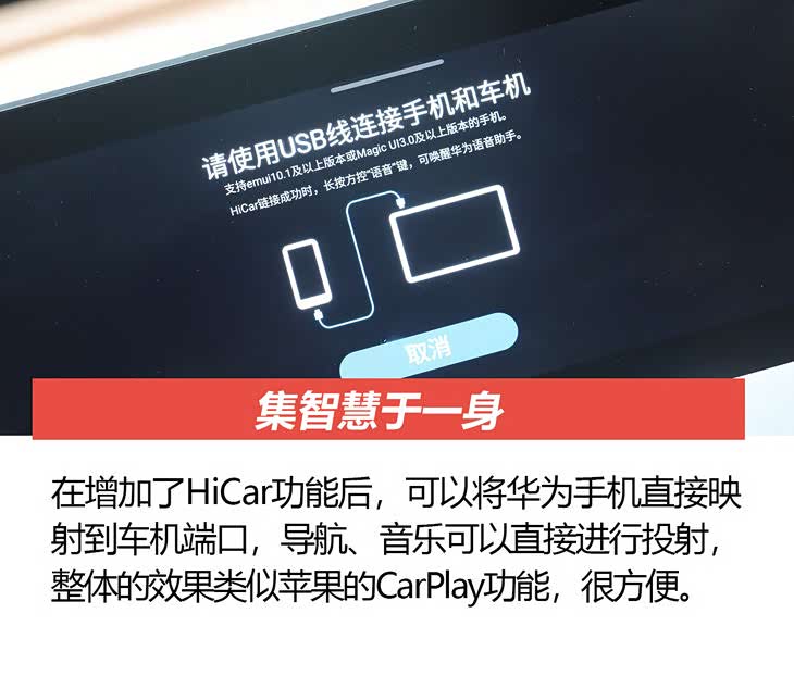 在增加了HiCar功能后,可以将华为手机直接映射到车机端口,导航、音乐可以直接进行投射,整体的效果类似苹果的CarPlay功能,很方便。未来华为HiCar功能还可以不断的进行升级,让你随时享受非常流畅的车机体验,始终如一。