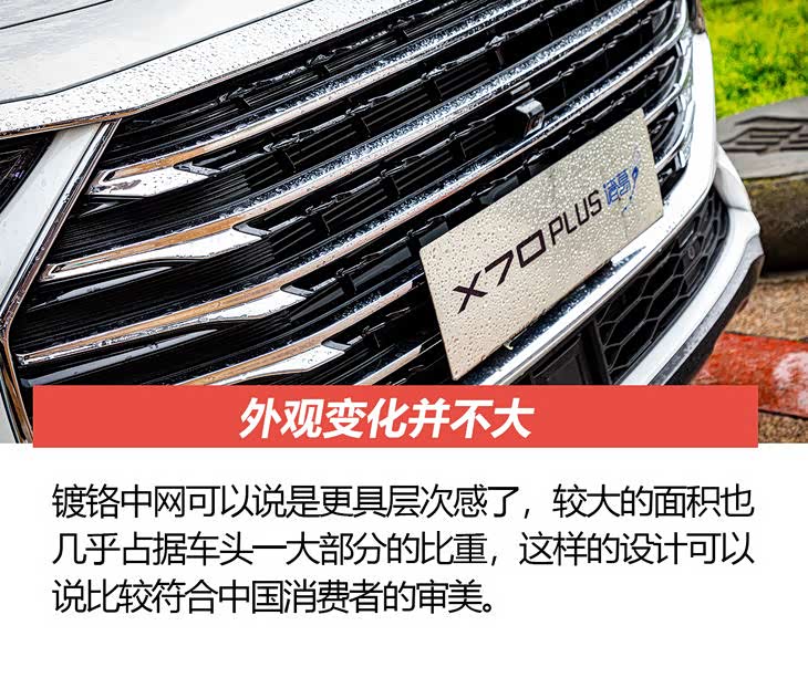 外观方面其实捷途X70 PLUS诸葛版并没有明显的变化,依旧采用了家族式“徽派建筑美学”设计风格。如果说有什么明显的变化,那可能就是镀铬中网的改变以及全系20寸的密幅式的轮圈造型了,其余的部分和普通版车型完全保持一致。