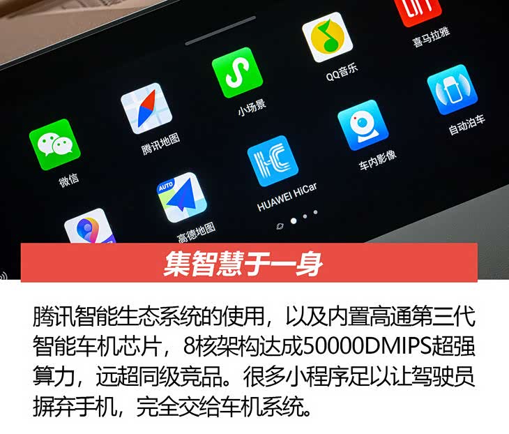 捷途X70 PLUS诸葛版搭载了最新的智能车机系统,强大的运行速度以及流畅的操作,直接证明诸葛版车型强大的智慧核心。腾讯智能生态系统的使用,赋予了这辆车强大的智慧。新车使用了高通第三代智能车机芯片,8核架构达成50000DMIPS超强算力,远超同级竞品。并且还加入了HUAWEI HiCar功能,这套车机系统在日常使用时,完全可以达到抛弃手机的效果。