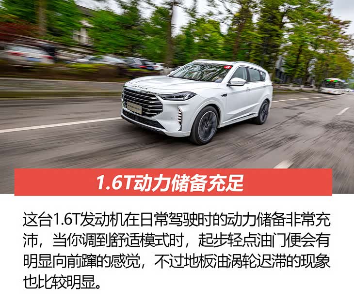 不过在舒适模式下,这台发动机就开始变得非常的“兴奋”,在绿灯起步时,只需要轻点一下油门,便会有蹿出去的感觉,初次驾驶可能需要习惯一下。但调整到ECO模式下,这台发动机就变得很温和了,整个动力输出非常平顺,市区驾驶也有非常喜人的油耗表现。在运动模式下,这台发动机时刻为驾驶员深踩油门准备着,整体调校比较激进。