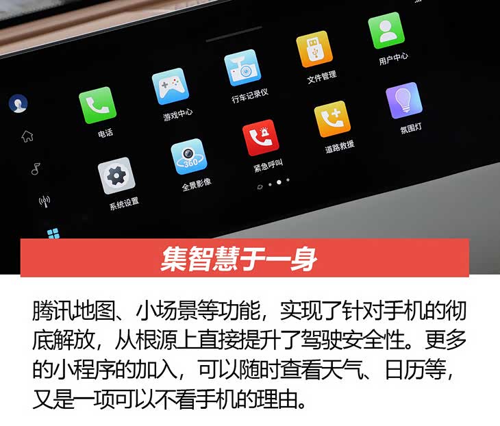 而腾讯地图、小场景等功能,实现了针对手机的彻底解放,从根源上直接提升了驾驶安全性,这要比任何堆砌安全配置的竞争对手要实在很多。为解决使用过程中遇到的导航信号弱,而中途信号暂时中断导致的路线引导错误问题,捷途X70 PLUS诸葛版开发位置场景化服务,实现高德、百度、腾讯多家地图切换导航一步达成。更多的小程序的加入,可以随时查看天气、日历等,又是一项可以不看手机的理由。