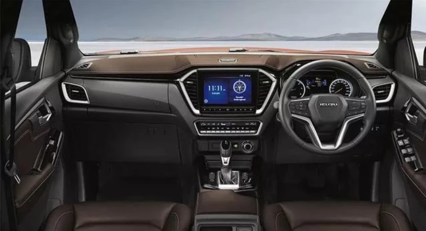 五十铃D-MAX整个圆润饱满的车头紧凑有力。健硕的车身轮廓以及精致亮丽的中网是其设计的亮点,视觉效果极具冲击力,上下两层中网被整合成更大尺寸的格栅,大灯整体是类似三角造型,内部光带式的日行灯和镀铬装饰,采用了四门双排布局。车尾部分,新款车型使用了全新的尾灯设计,立体式的灯罩分为上下两部分光源,环状的光源有着不错的精致感。