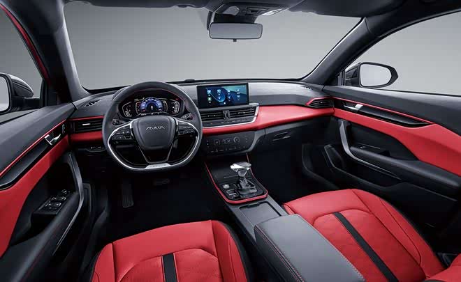 接着再看车内,奕炫骑士版在车内中控台、门板和座椅处都采用了更富运动激情的红色内饰,方向盘也是全新设计,底部变平的运动方向盘。7英寸全液晶仪表盘、10.25英寸悬浮式中控屏和10英寸全触控空调面板则营造出很强的科技感,非常拉风炫酷,很符合年轻用户的口味。