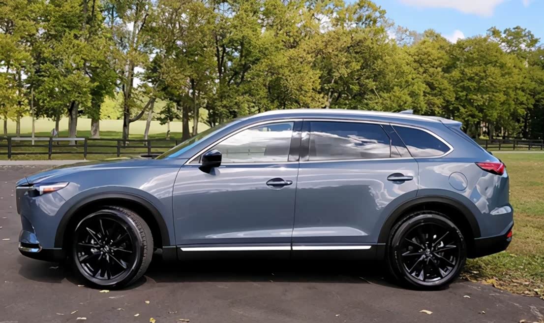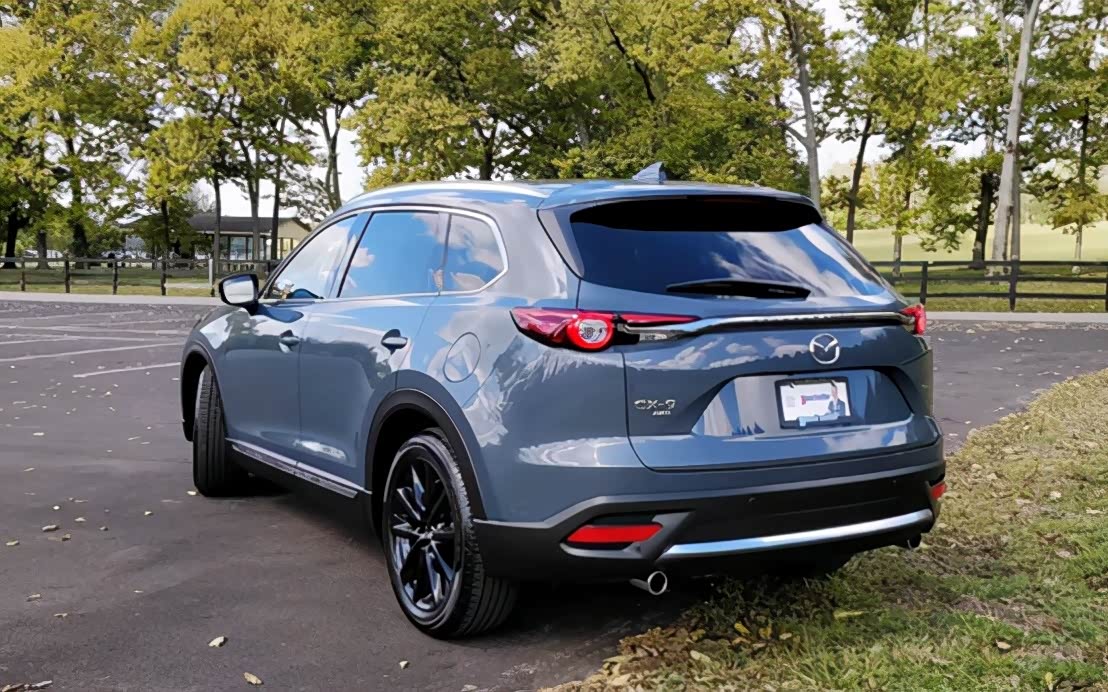 车身侧面部分,这辆CX-9也是很容易和CX-8混淆的,不过仔细对比两车还是有着明显差别的,CX-8的后侧窗是后扬的造型, 而这辆CX-9则是更为稳重一些的和C柱平行的造型。在尺寸数据上,CX-9的轴距和CX-8一样,都是2930mm,但是长宽高分别为5075/1969/1747,明显比CX-8大了一圈,相比汉兰达自然也是要大了一圈了。