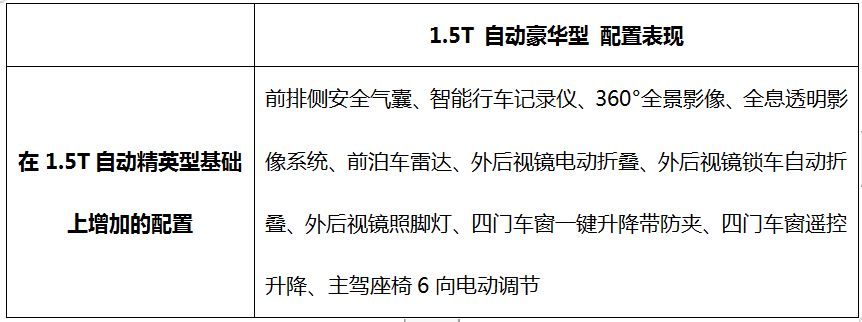 如果你愿意多花1万元,可以升级到自动豪华型,除了增加主驾座椅6向电动调节、四门车窗一键升降等提升便利性、舒适性的配置外,还有前排侧气囊、前雷达、全景影像、全息透明影像系统等安全配置,可以大大提升用车的便利性和安全性,个人觉得还是很值得的。如果你对动力没有太多的要求,那么1.5T自动豪华型个人觉得是1.5T低功率版本里最值得选的车型。