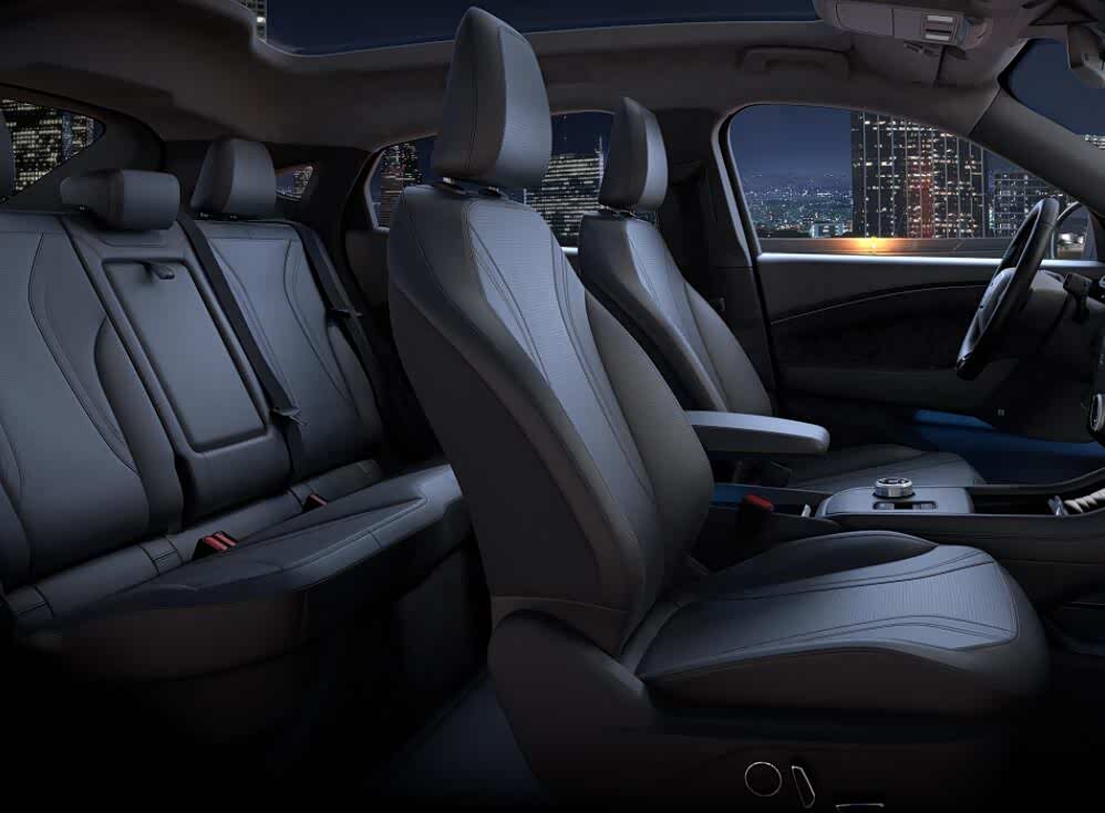 在内饰部分,新车同样延续了海外版本悬浮式大尺寸液晶屏的设计理念,高达15.5英寸的纵向大尺寸液晶屏幕和10.2英寸的全液晶仪表盘都为全系标配,而内圈自带屏显效果的魔术悬浮旋钮更是成为点睛之笔,体现出出色的科技感。除此之外内饰的整体设计则体现出纯电动车常见的简约风格,当然多种材质的装饰面板,皮革缝线工艺等高端细节也没有缺席,此外国产版本还对中央扶手箱前端换挡区域进行了修改,增加了更加高级的可伸缩储物格遮罩,充分符合了中国消费者的喜好。
