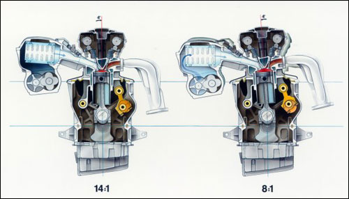 但如果一台发动机能够根据工况变化来改变压缩比的话就可以彻底解决这一矛盾。也就是在缸内压力较低时(如怠速、巡航时),采用较大的压缩比,达到省油的目的,而在大负荷下(加速),则采用较小的压缩比,防止发生爆震,从而最大限度地挖掘发动机的潜力。