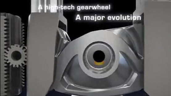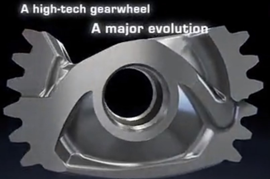 具体可看下图,下图是位于发动机中央的零部件——摆杆,摆杆两侧刻有轮齿,其中左侧与活塞啮合,右侧与液压执行器操纵的控制齿杆连接。