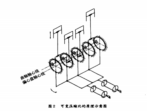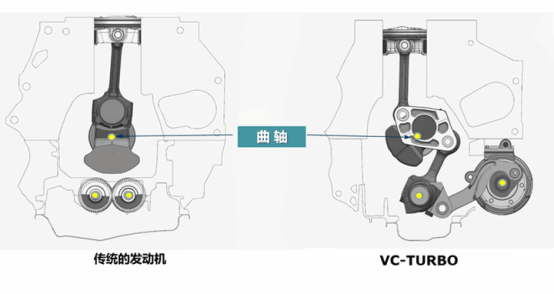 其原理是在发动机曲轴中加入了偏心轴结构,使得曲轴中心线与其旋转中心线不重合,产生偏心距。继而再利用一台永磁无刷同步电机,通过偏心轴上的齿轮带动偏心轴转动,届时活塞就会在偏心距的这段距离中发生位置变化,由此调节压缩比。
