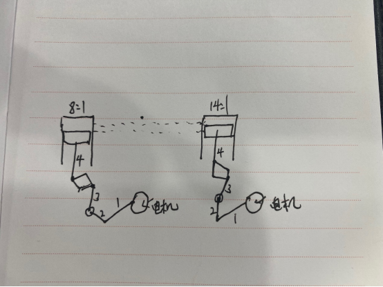 具体可以看下图,当该发动机压缩比想从8:1变化到14:1时,电机会从逆时针旋转,带动1号连杆,之后1号连杆带动2号连杆,让2号连接顺时针旋转。