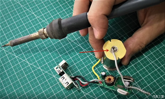 正极也接在了箭头所指的这个地方,要的就是简单粗暴,不用搞太麻烦。