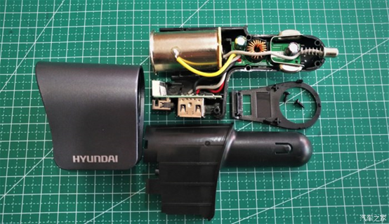 拆开后看到有一块小PCB板,几个电容电阻组成,输出端只有两根分别是正极、负极电源线,并没有其他数据线。