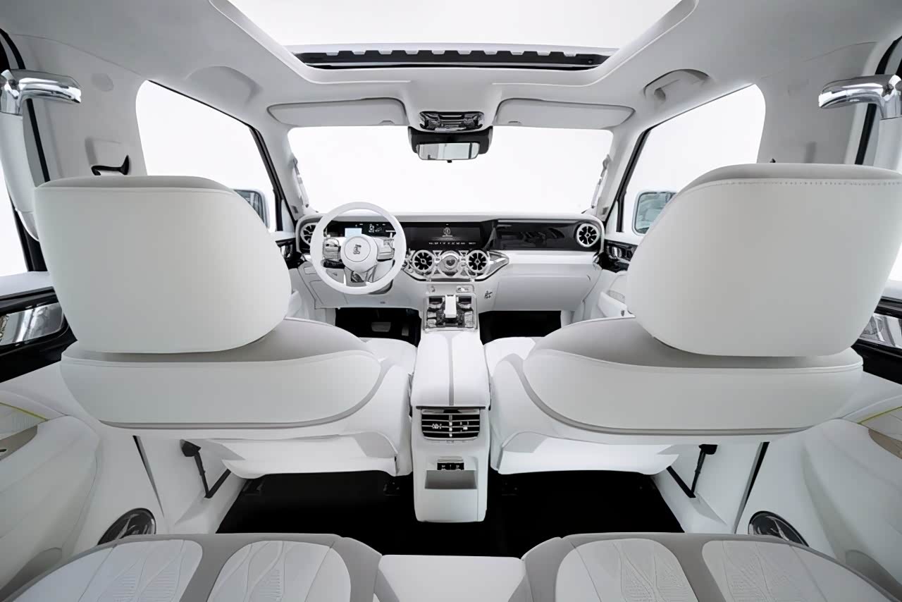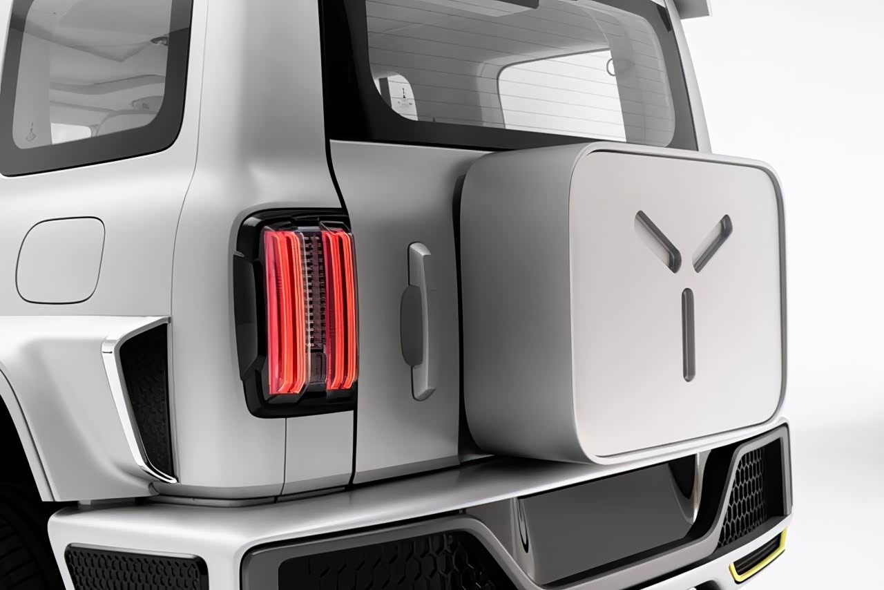 赛博坦克300前脸采用时下主流的贯穿式LED大灯,并且下方采用了极具科技感的前包围设计,机盖上方还有类似于巴博斯G级的机盖设计。另外,这款车在外形方面还增加了许多个性的元素和极具赛博朋克风的设计,整体看上去更加酷炫。