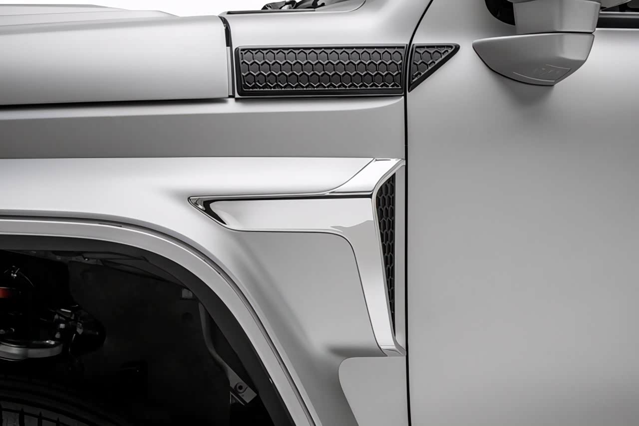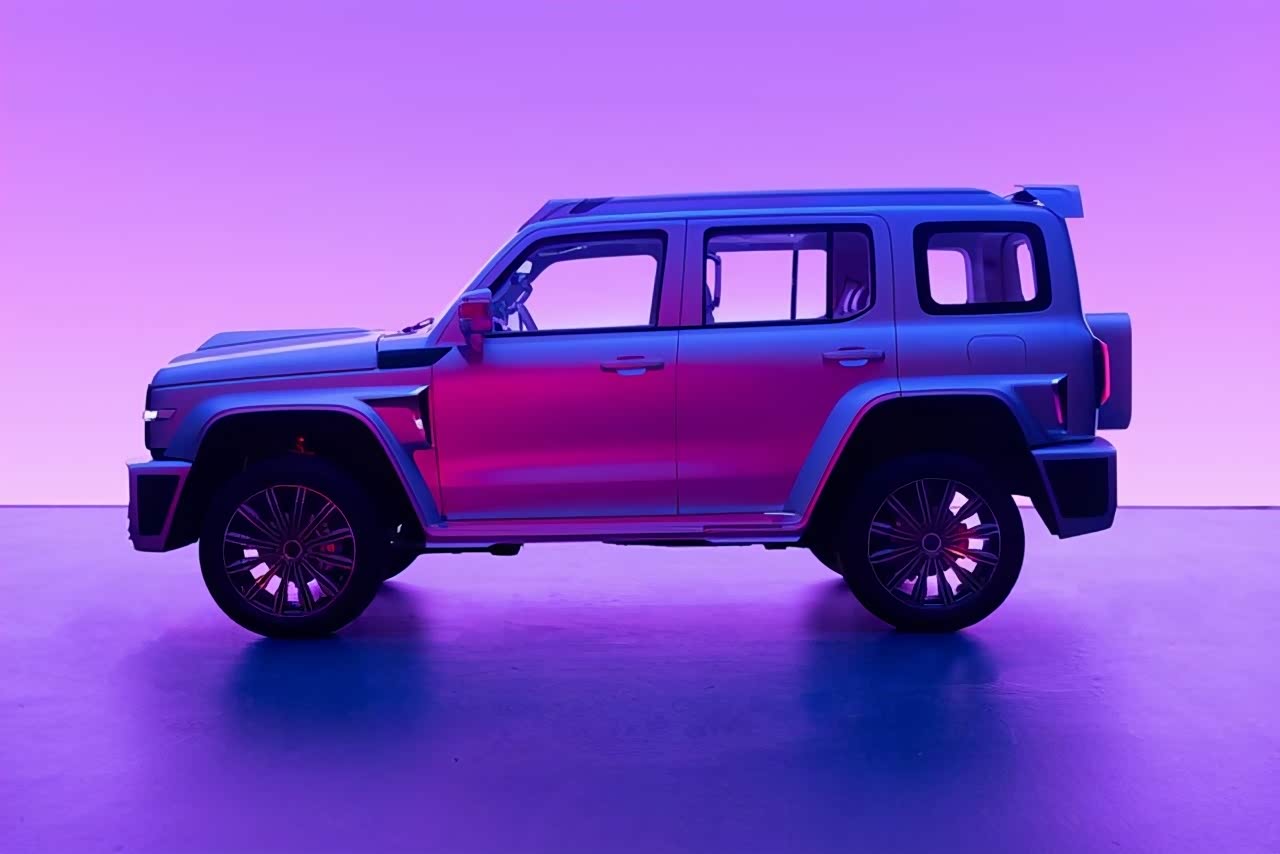 也就是说,在本届2021上海国际车展中,我们便能亲眼看到这台车了,从赛博坦克300的官图中可以看到,这款车整体的外形设计已经明显区别于坦克300,在CYBERSPACE超境汽车加持下,赛博坦克300整车外形有着浓郁的赛博朋克风格,并且车身各个区域的棱角更加立体。