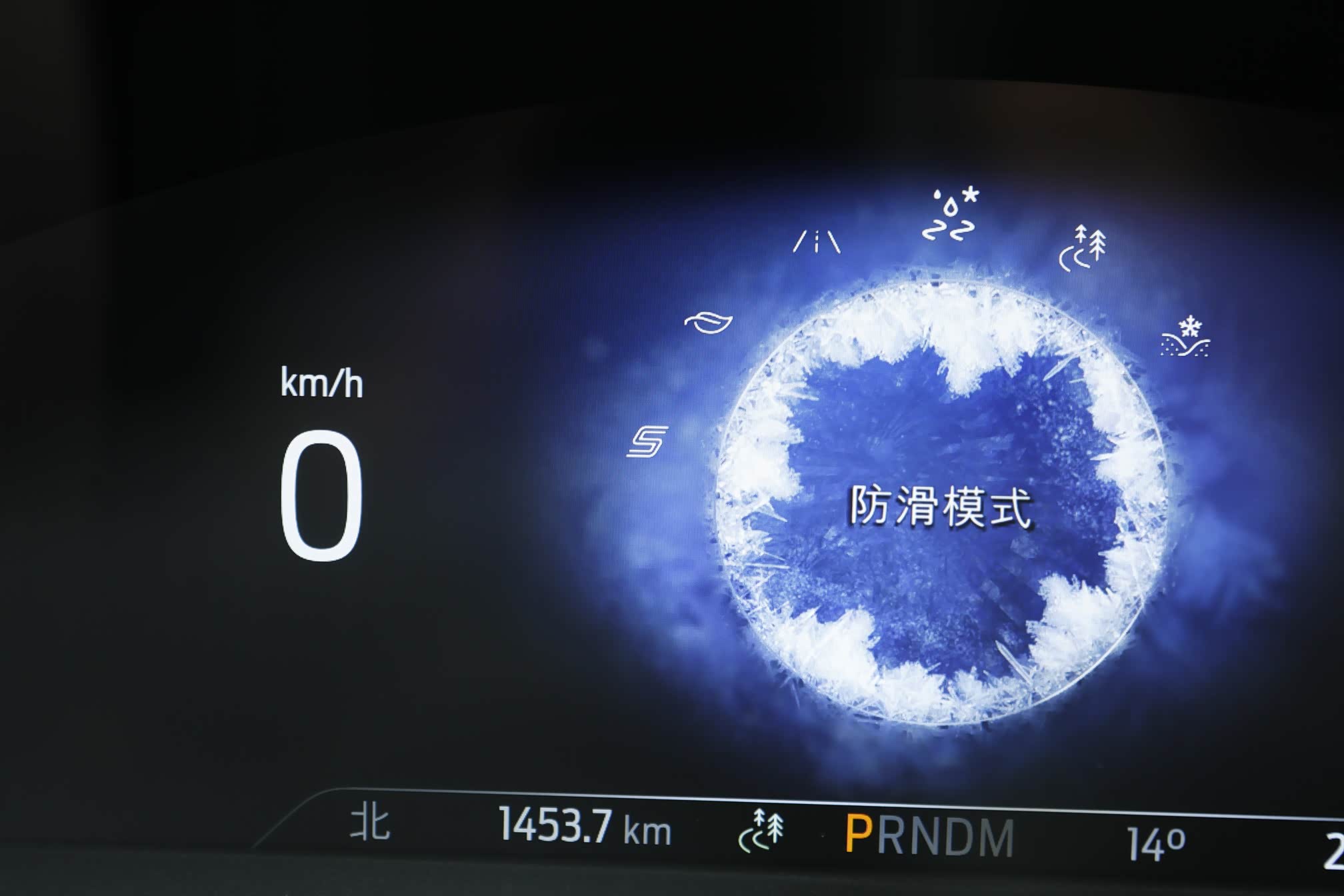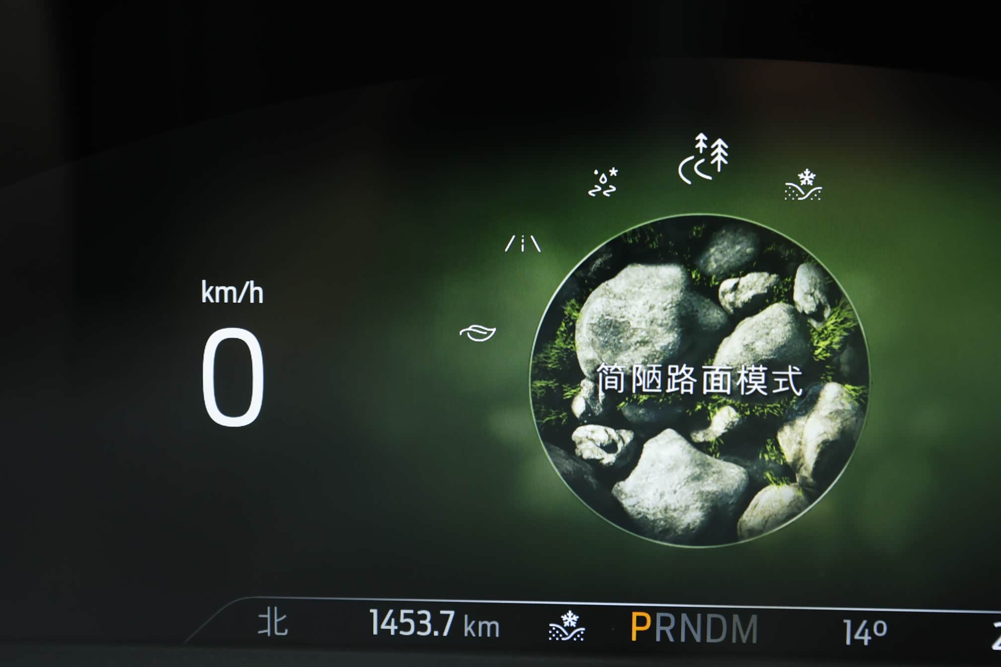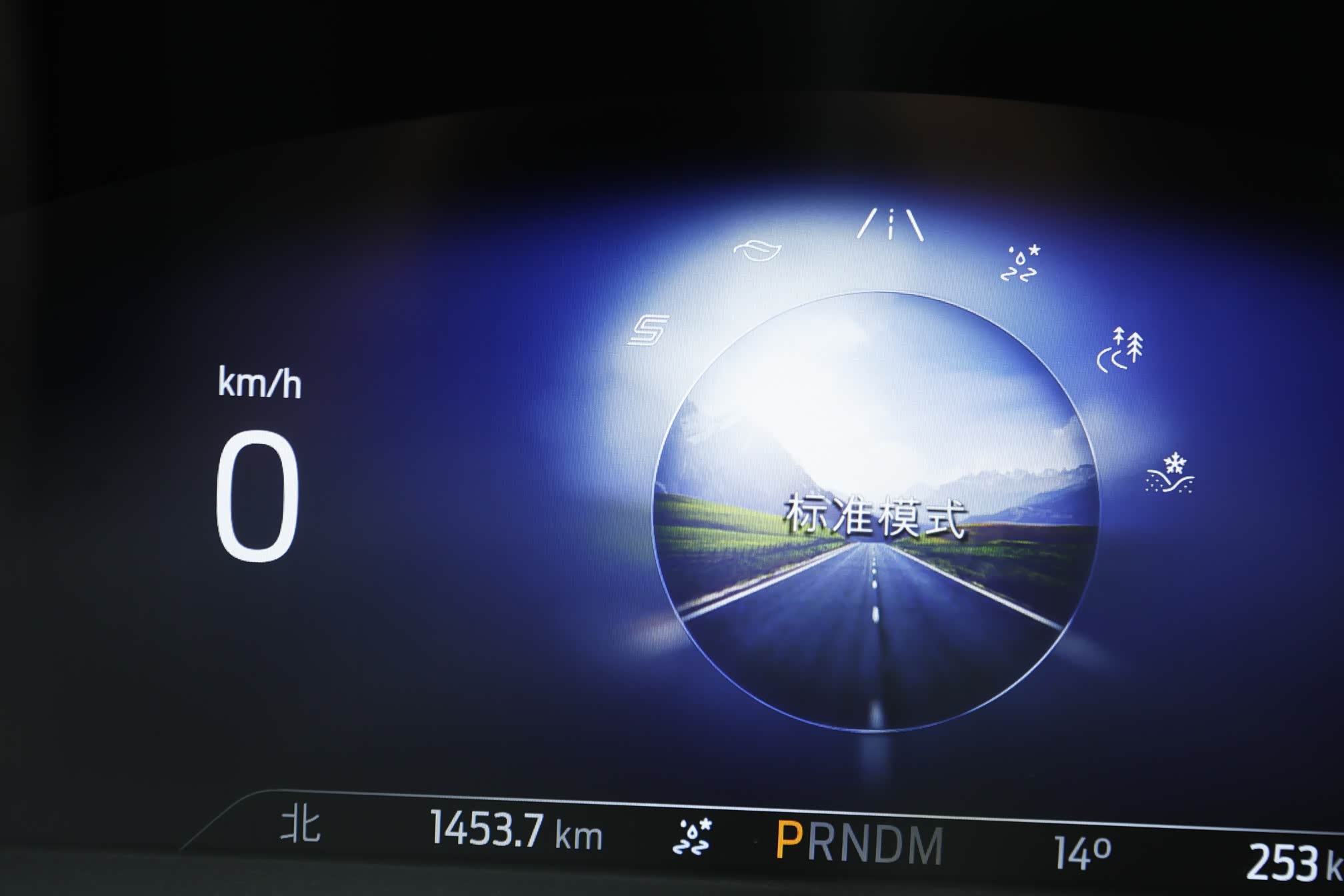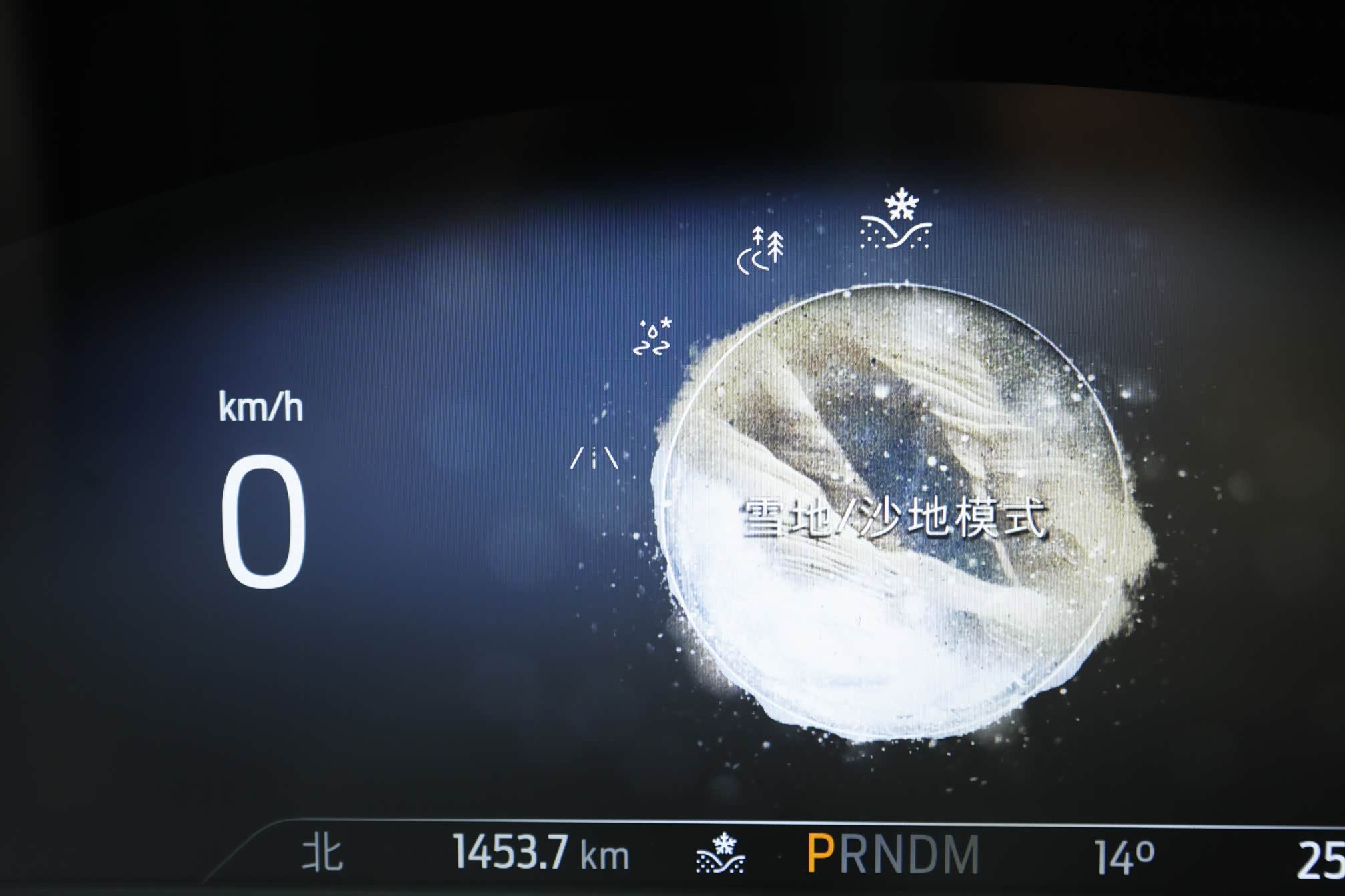 仪表盘6种背景显示对应6种驾驶模式:雪地/沙地、简陋路面、防滑、标准、经济和运动,呈现导航、娱乐、路况模式等多种信息。