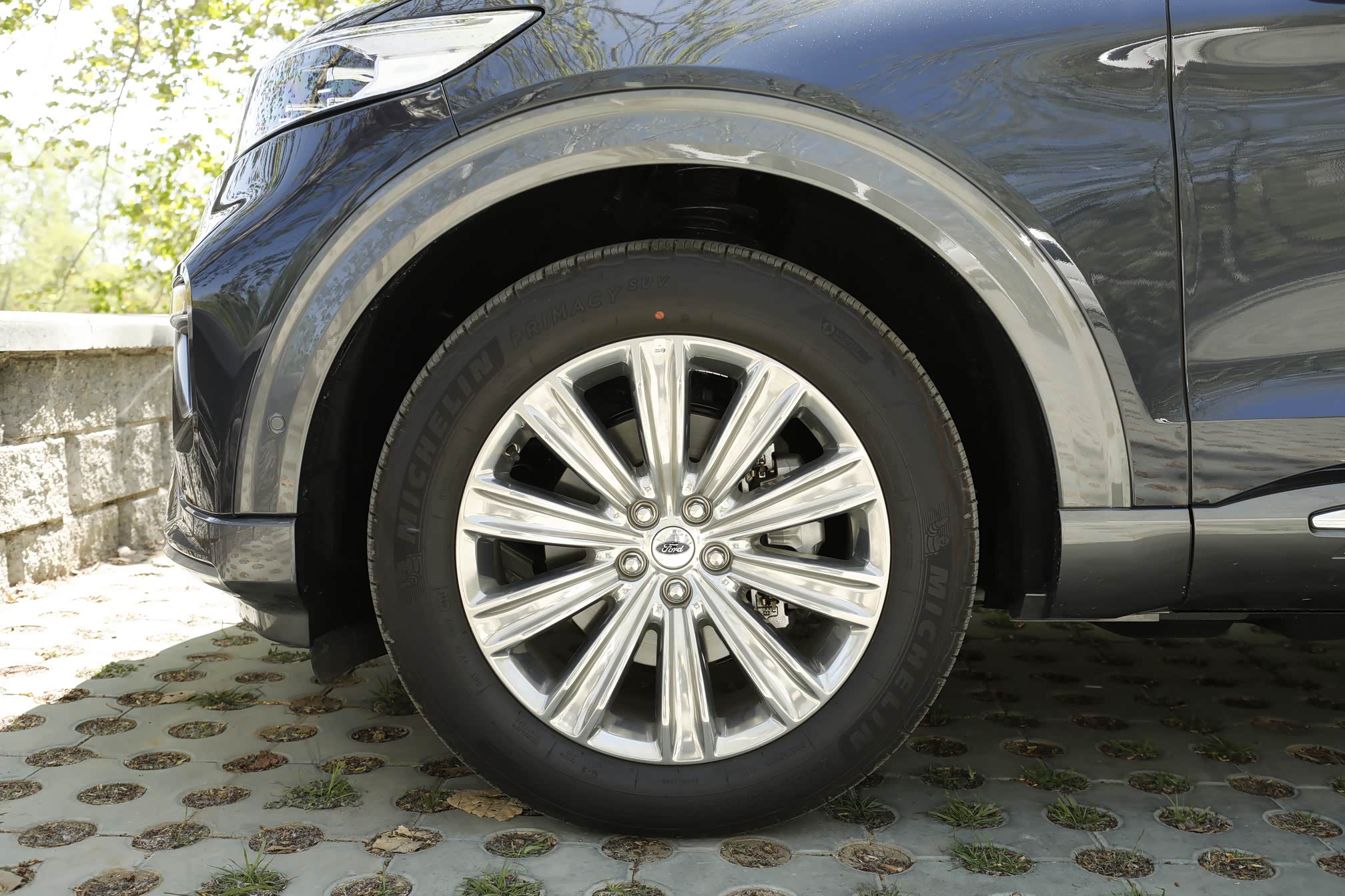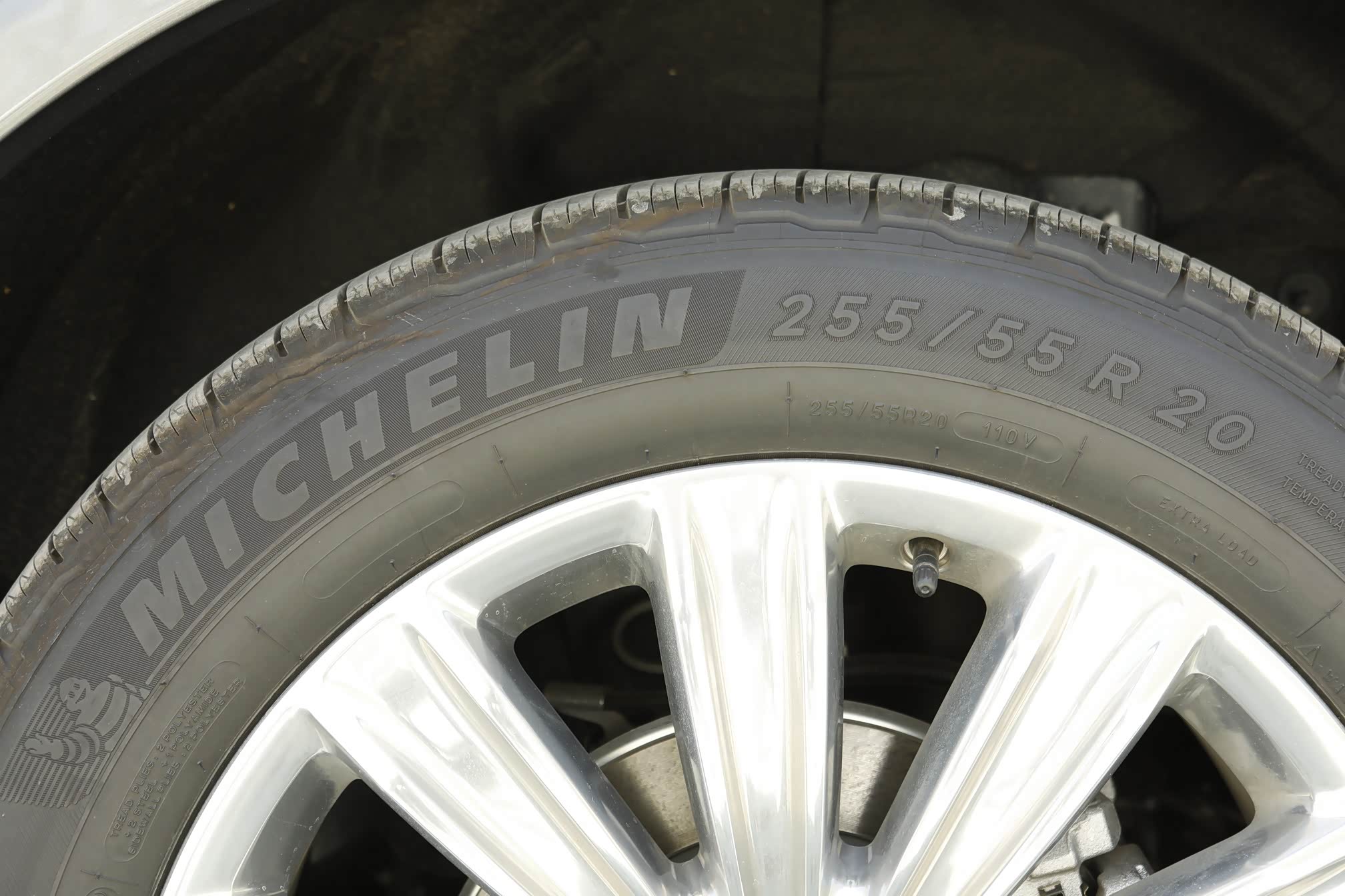 20英寸多幅式轮毂,匹配米其林轮胎,抓地和耐磨性出色,规格为255/55 R20。型面丰富的轮眉加大了轮胎尺寸的视觉效果,侧面肌肉感倍增。