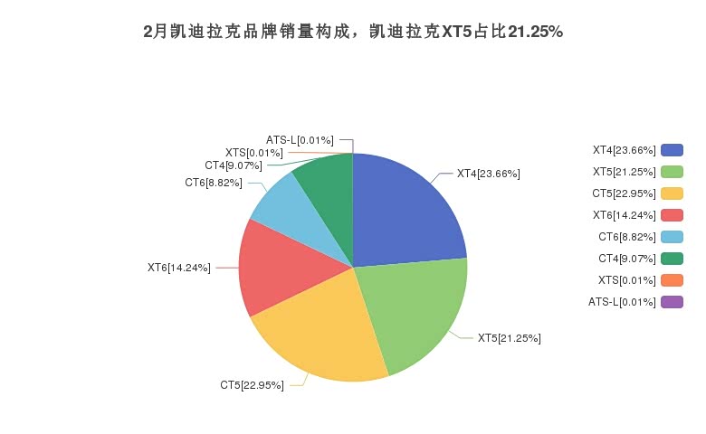 2月份凯迪拉克XT5在SUV市场销量第67,占比0.46%