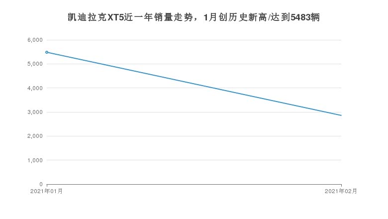 2021年2月,凯迪拉克品牌总体销量达到13449辆,其中凯迪拉克XT5销量达到2858辆,占品牌总销量的21.25%。