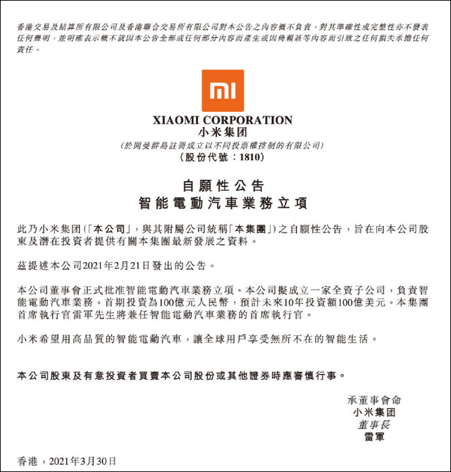 相比于前几位来说,小米可能才是真正慢人一步的企业。前不久的小米手机新品发布会上,雷军正式宣布小米造车,他表示,“这是小米全体合伙人反复考量的结果,也是我人生最后一次重大创业项目。我愿意押上我人生全部的声誉,再次披挂上阵,为小米汽车而战!”