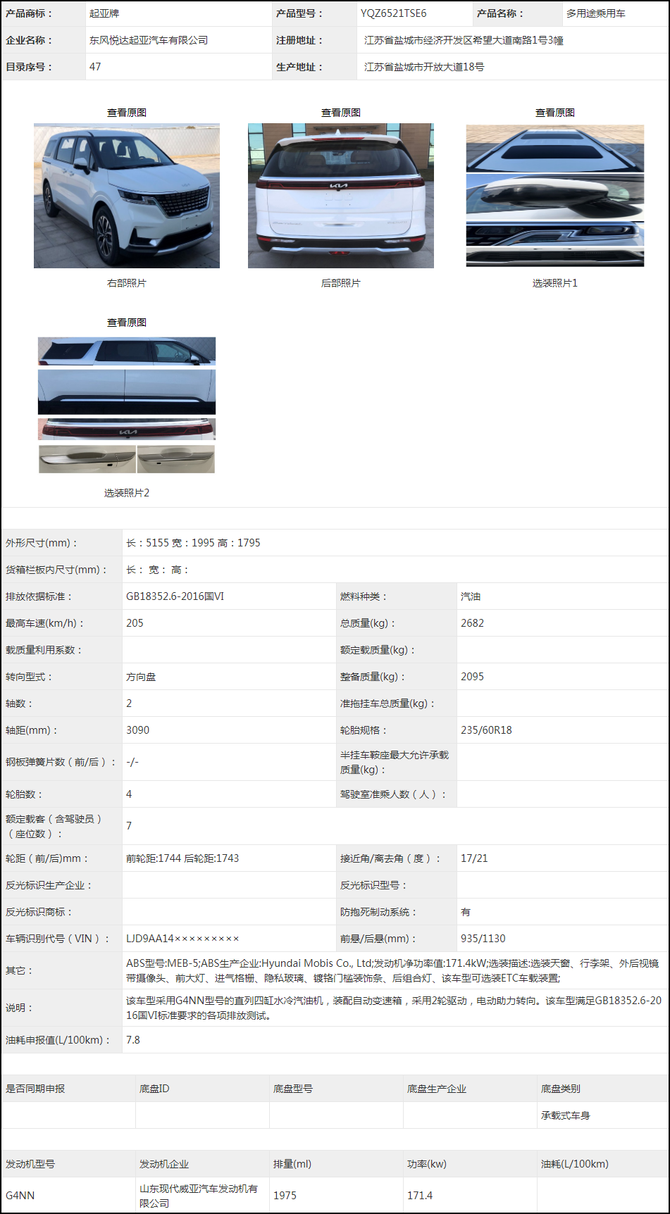因为上市时间临近,国产第四代嘉华也现身工信部第343批《道路机动车辆生产企业及产品公告》新产品公示;从申报图片来看,国产嘉华沿用了海外版车型的设计风格,整体视觉效果非常硬朗,大尺寸前进气格栅与狭长大灯融为一体;车身采用大量直线,其好处是可以让车内头部空间达到最优。车尾采用贯穿式尾灯设计,起亚全新LOGO位于尾灯中间,辨识度很高。A/B/C/D柱都进行了熏黑处理,且C柱还带有银色饰板,提升了整车的时尚感。就整体设计风格而言,小猫认为嘉华更接近传统美系MPV设计。