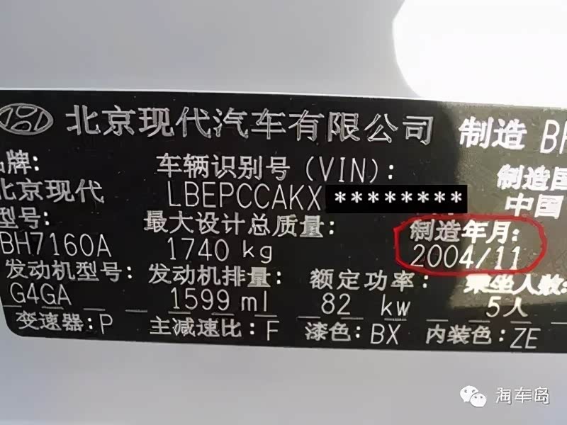 举个例子上面车的铭牌如下图,可以看出制造日期为04年11月份,而玻璃时间是08年4月份,两个相差了近4年时间,基本可以判定这辆车一定换过玻璃,无论什么原因,这个时候大家一定要小心分析了。
