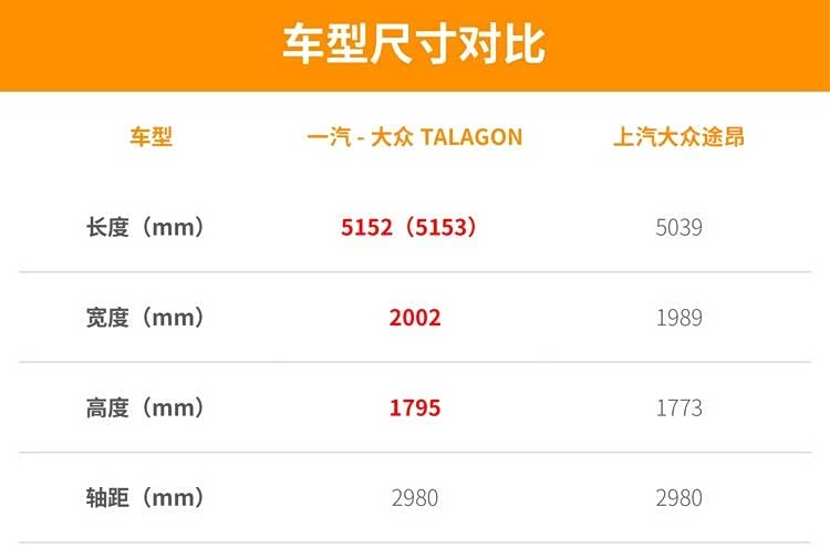 和兄弟车型途昂相比,它的造型走的时尚简约派,精干的车身线条配合着丰富的镀铬饰条,上岁数的老同志莫慌,你一定会看顺眼的。尺寸方面,一汽-大众 TALAGON更占优势,长宽高“三围”全面领先途昂,具体尺寸分别为5152(5153)/2002/1795毫米,轴距两车持平为2980毫米。