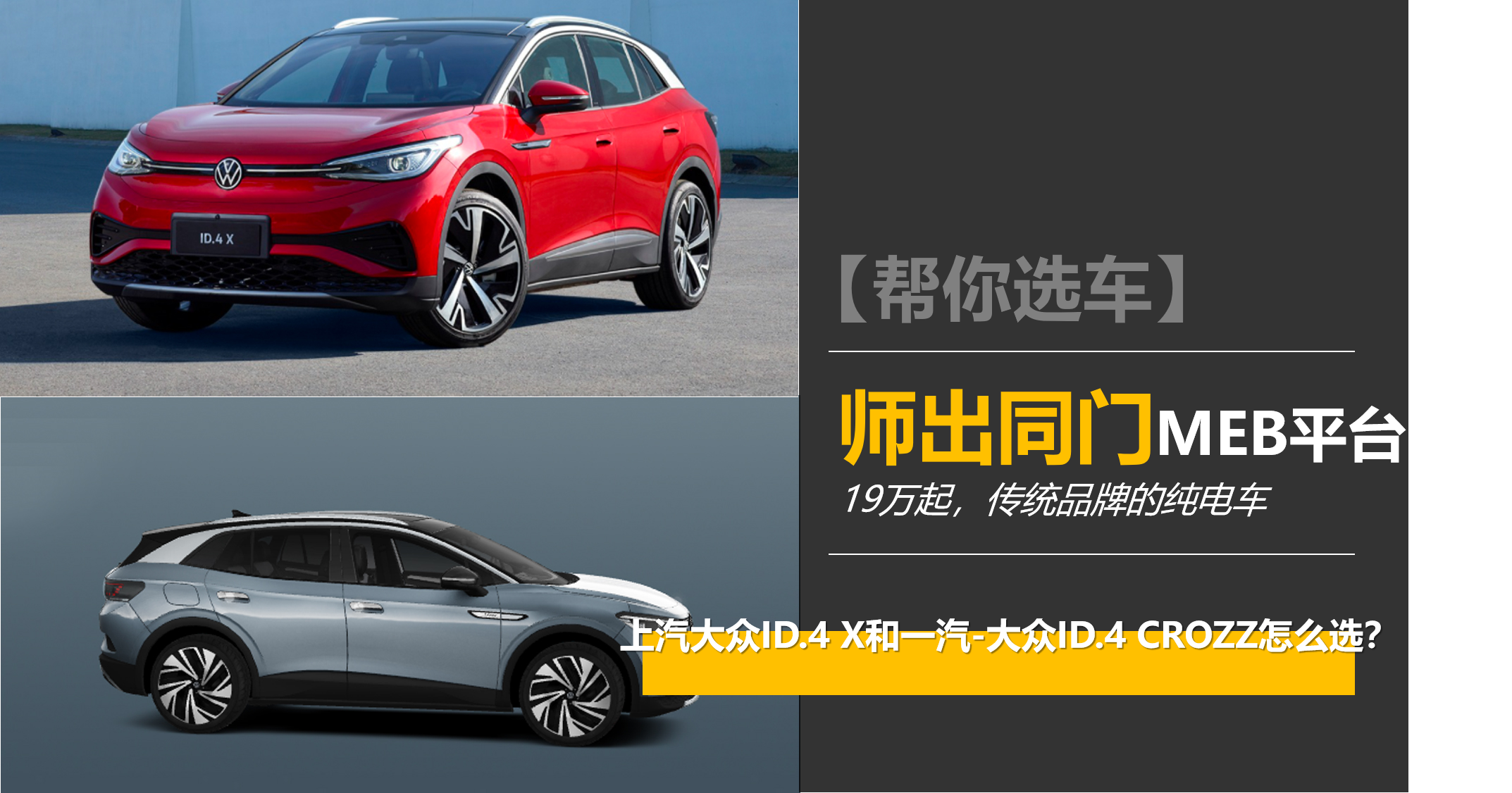 谈起新能源车型,很多人第一时间想到的绝对是新势力造车。毕竟目前的国内新能源车市场,依然是他们在唱主旋律。似乎老牌的传统企业都对新能源车这个版块不是特别上心。不过随着市场需求的扩大,很多传统的车企甚至豪华品牌都加入了新能源车的浪潮。而其中最接地气的就要数大众家族的ID.4 X和 ID.4 CROZZ,分别来自上汽大众和一汽-大众,作为同门“师兄弟”无论是外观还是配置都是如出一辙,就连售价都非常接近,前者售价19.9888~27.2888万元,后者19.99~27.99万元。那么这两部车到底该怎么选?今天小编就和大家一起盘一盘。