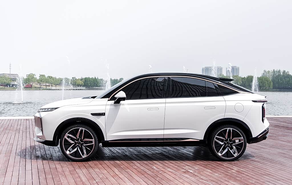 荣威鲸侧面最吸引人的,自然是动感的溜背式设计,再搭配低趴的车头,营造出了蓄势待发的视觉效果。当然,采用溜背式设计的SUV如今已屡见不鲜,不过荣威的设计师解决了溜背式SUV的一大痛点:空间。