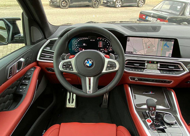 内饰部分,宝马X5 M内饰大面积采用真皮面料覆盖,同时新车还通过中控区域的碳纤维饰板增强了这台车的运动定位。配置方面,全景天窗、液晶数字仪表盘、具备导航显示的大尺寸中控屏等都没有缺席。