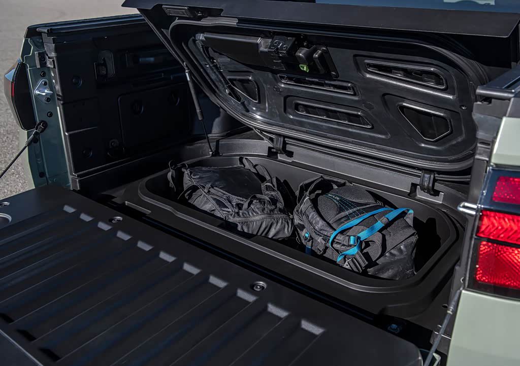 倾斜C柱被设计的更加粗壮,C柱之后就是一个并不算长的尾厢,车尾简洁,牌照位置被设置在后保险杠上,尾灯造型独特,狭长尾灯内部导光条为T形设计,增加视觉宽度的同时也较为个性。尾厢内是安全、可锁止的存储空间,尾门可完全放平进一步增加装载能力,平整的尾厢地板下还有一个容积可观的凹槽,论整体装载能力和空间灵活性,Santa Cruz皮卡远胜一些尺寸更大的SUV车型。