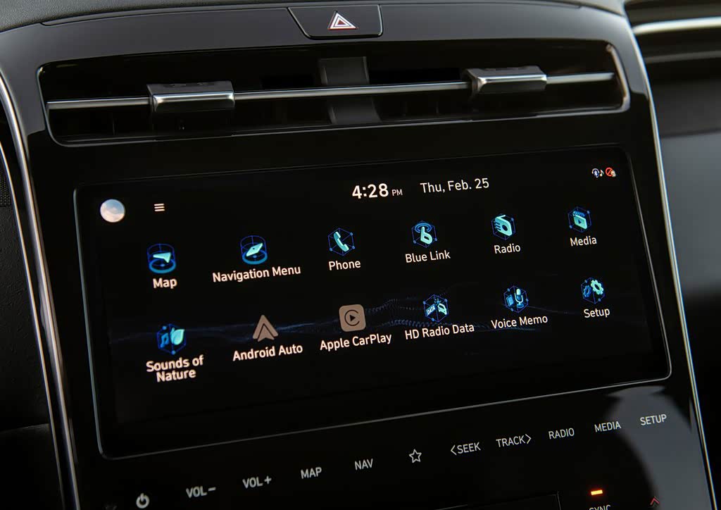 配置方面,常规配备20英寸轮毂合全季轮胎,并提供适合越野的18英寸轮毂和更大扁平比轮胎,搭载ADAS高级驾驶员辅助系统,这套系统包括放碰撞预警(FCA)、盲区防撞辅助系统(BCA)、后方交叉交通避撞辅助系统(RCCA)、车道保持辅助(LKA)、智能巡航控制系统(SCC)等,提供无线AppleCarPlay和Android Auto连接、无线充电、数字钥匙、8扬声器BOSE音响、BlueLink联网系统,支持远程解锁、启动车辆、打开座椅加热、通风等功能。