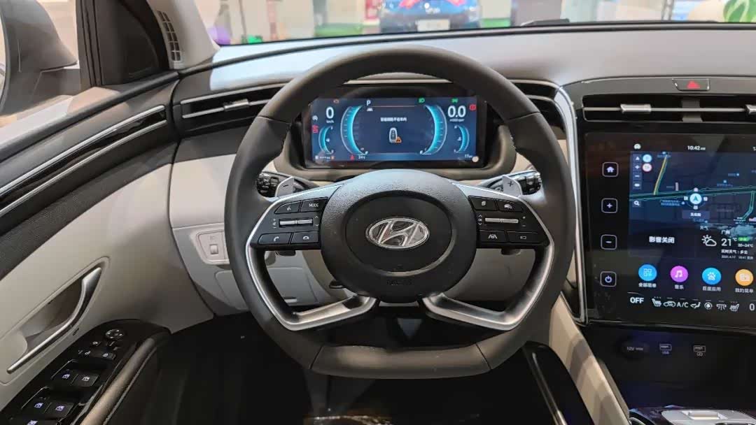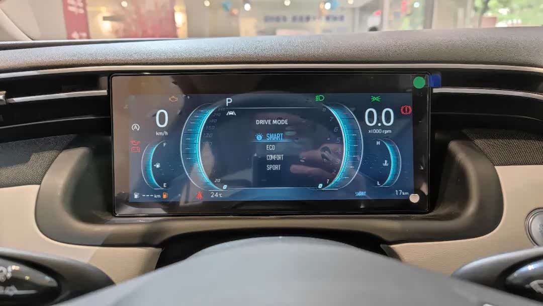 笔者坐到驾驶座上,途胜L稍微带点平底的方向盘造型握感中规中矩,美中不足的,是多功能按键上手感,塑料感和松垮的感觉有点掉价。前方嵌入式的液晶仪表盘走的是简约范儿,显示的清晰度和易用性都很出色,有智能/经济/舒适/运动四种模式,但只改了个小小的颜色实在略显“搞笑”。