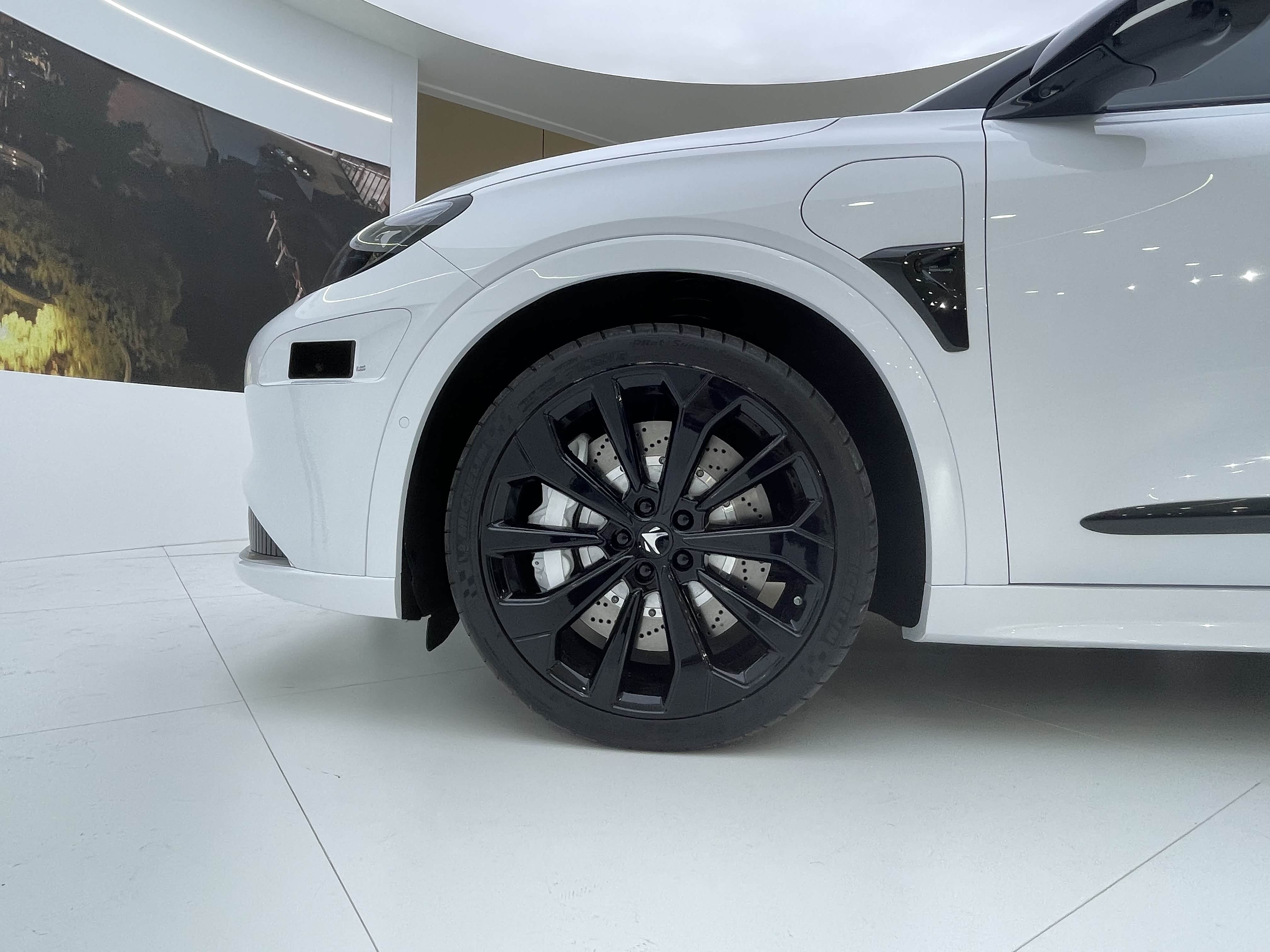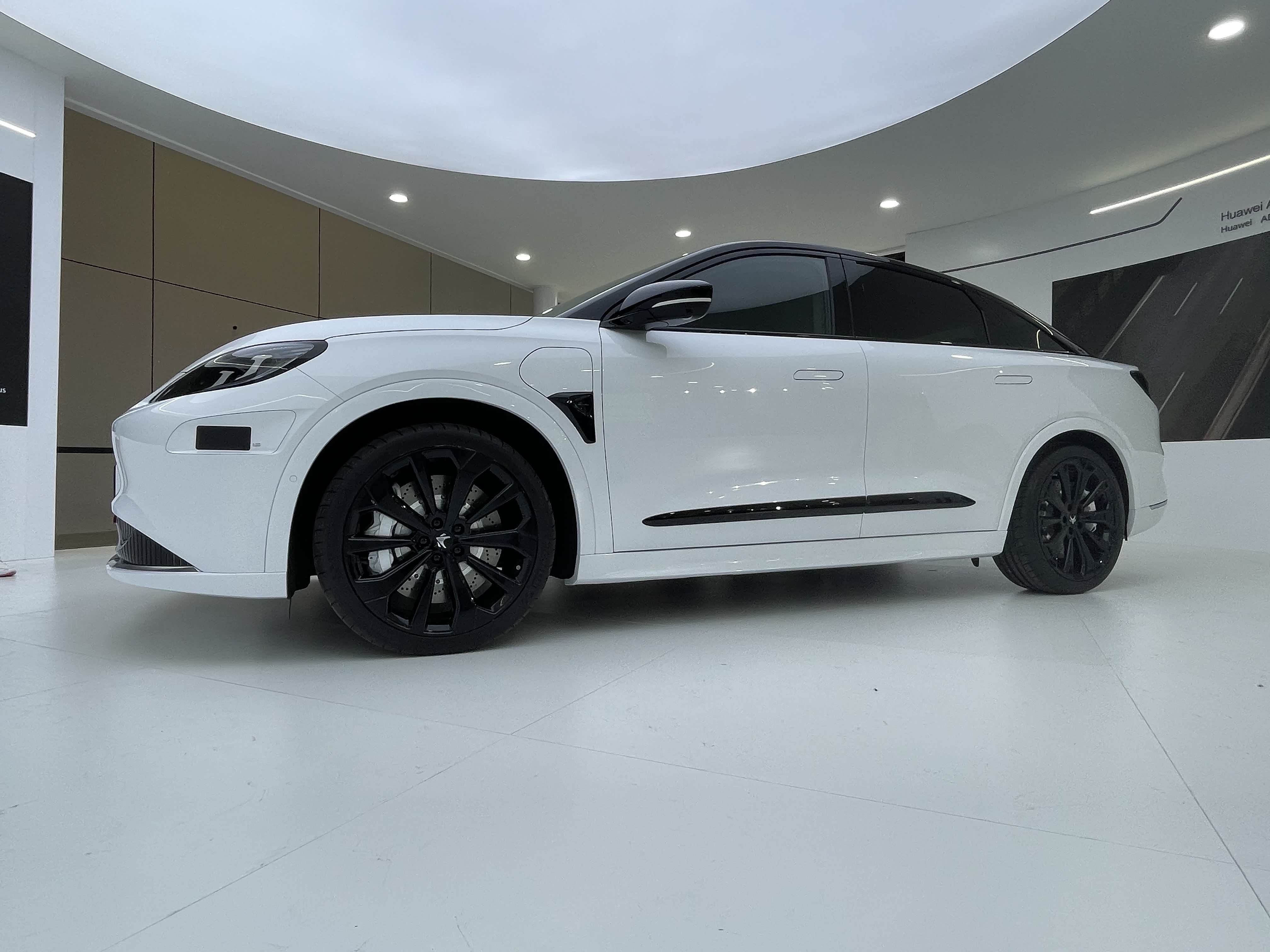 新车长宽高分别为4930/1940/1599mm,轴距为2915mm。车身侧面线条流畅,门把手为隐藏式的设计,同时配备了多辐式熏黑运动轮毂,内部还采用了打孔散热的刹车盘,配合黑色车顶和车身侧面多处的黑色装饰,让整车看起来十分彰显战斗气息。此外,新车同样在侧后方加入有华为HI版专属徽标。