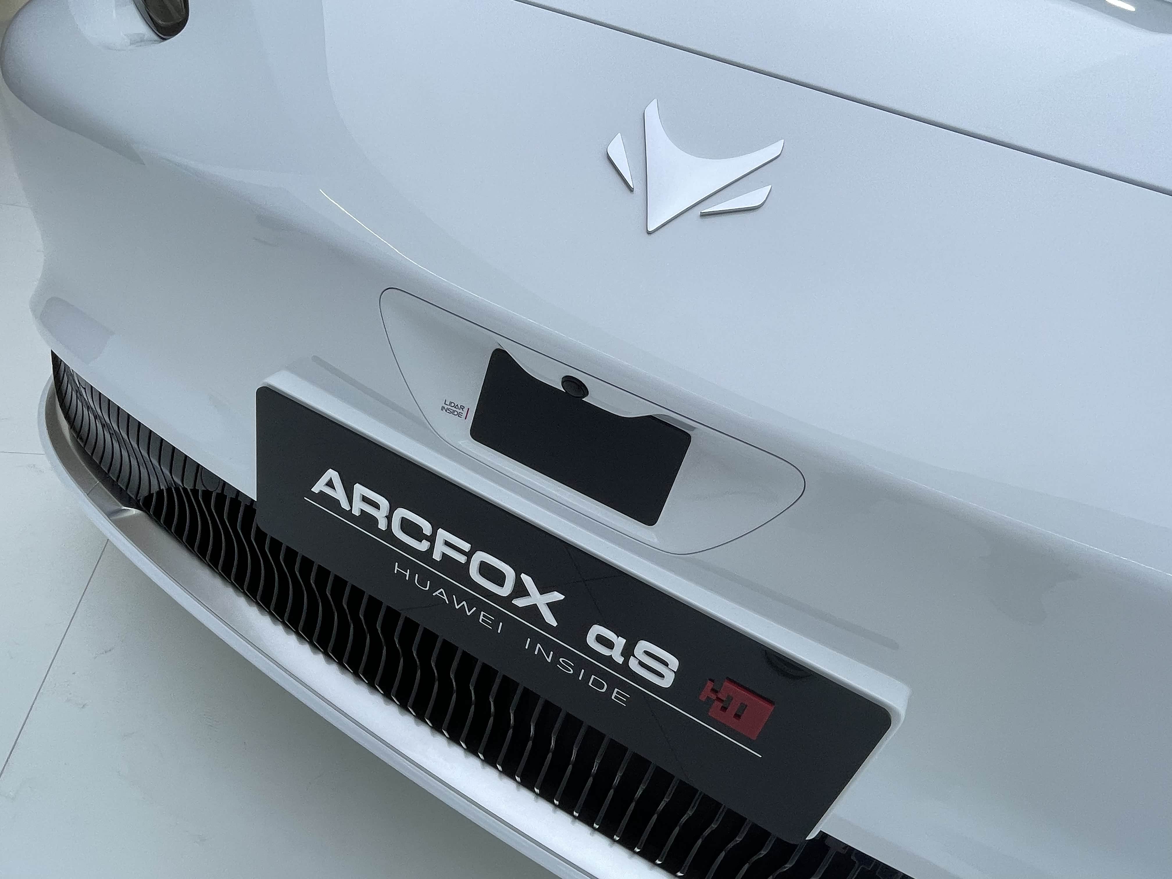 外观方面,极狐阿尔法S 华为HI版和普通版车型基本保持一致,前脸采用了极狐品牌家族化的“X型”设计风格,给人视觉印象简约而动感,但并未采用纯电动车惯用的封闭式格栅的设计思路,下包围采用了黑色菱形纹理饰板装饰,并加以贯穿式镀铬饰条进行点缀,同时还镶嵌有红色的“HI”标识,以此来彰显车型身份。