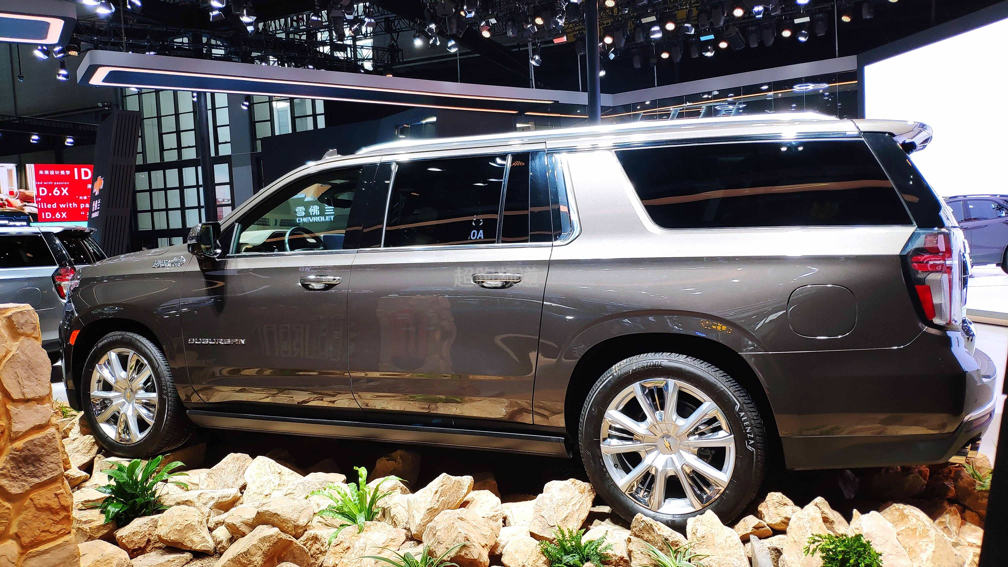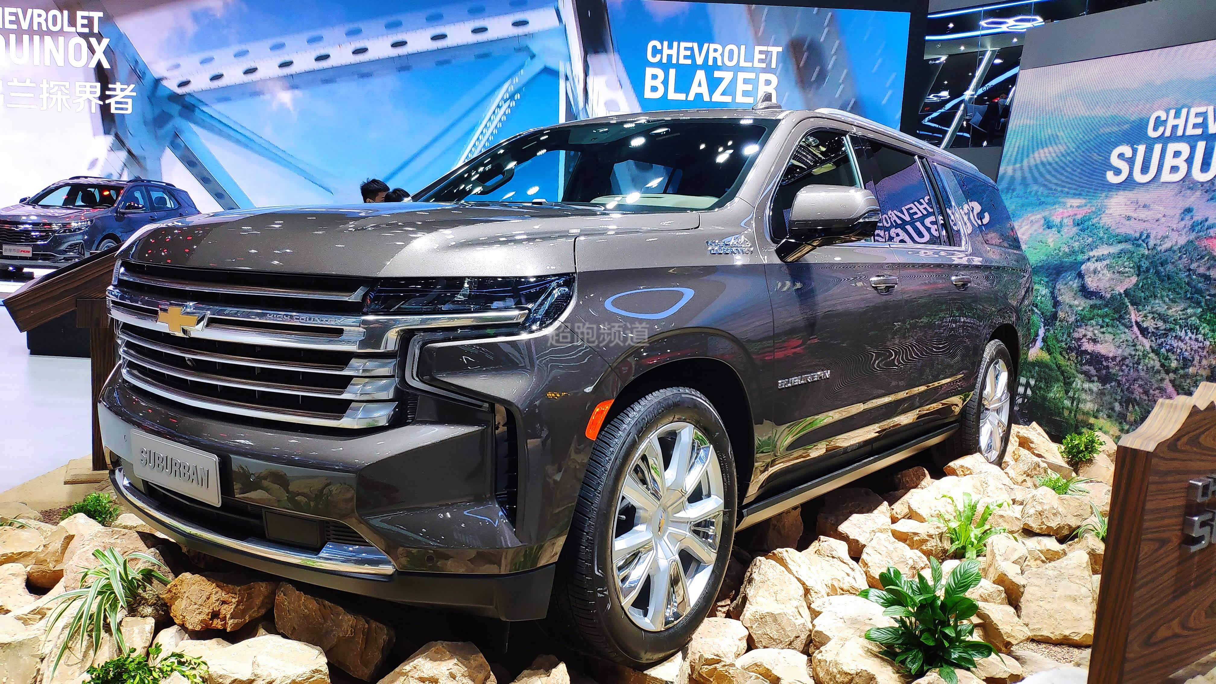 2021年上海国际车展: 雪佛兰Suburban High Country实车,是雪佛兰车型中最旗舰的产品,新车带有浓厚的美系风格。车身尺寸长宽高为5725/2060/1923mm。竞品主要为凯迪拉克凯雷德长轴距版等车型,拥有充满气势的外观设计,霸气感十足,动力搭载6.2L V8发动机,并且变速箱采用了Hydra-Matic 10L80 10速自动变速箱。