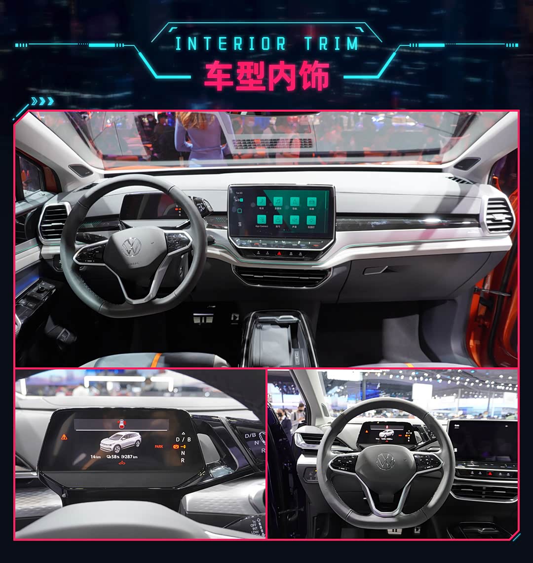 内饰部分,两款车的设计都一脉相承,采用了大众ID家族的设计语言,整体风格非常简约,并没有太多实体按键,呈现出了更强的科技感。