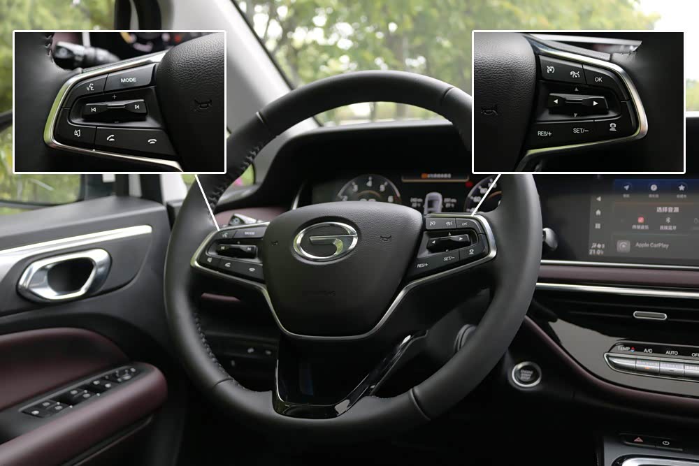 传祺M6 PRO配备了三幅式方向盘,两侧的功能键功能齐全,集成了蓝牙、语音、定速巡航等功能。