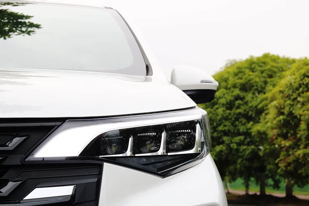 传祺M6 PRO的前大灯采用了全LED矩阵式设计排列,飞雁形装饰配合LED灯珠增加前脸整体气势。此外,传祺M6 PRO的三眼式矩阵大灯还有着极强的照射能力,照射距离可以达到350米,照明宽度35米,大大增强的夜间行车安全。