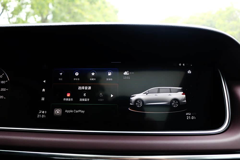 传祺M6 PRO搭载的10.25英寸中控屏不仅界面操作简洁明了,而且内置的应用程序相当丰富,完全能满足车主的各种需求。另外,车机系统搭载了华为HiCAR功能,能实现手机无线投屏,此外苹果CarPlay和百度CarLife功能也保留下来。
