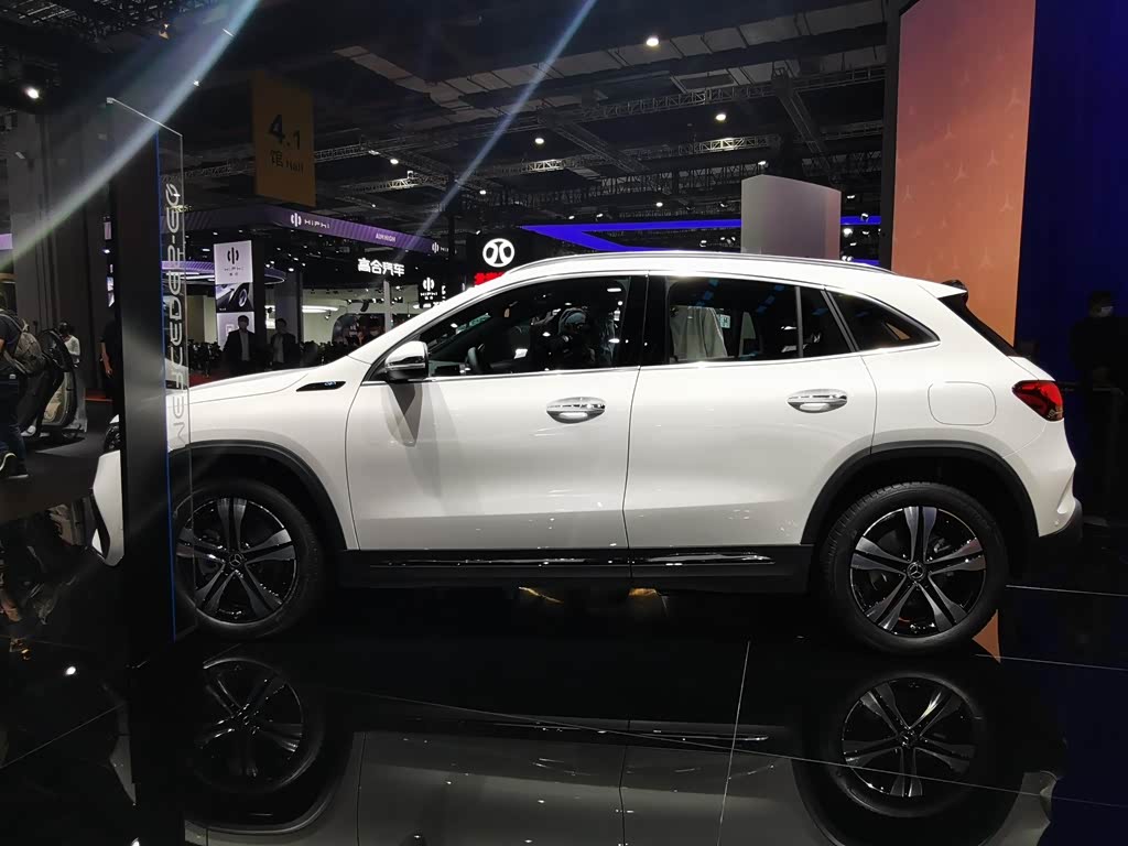 外观上,EQA有着和GLA相似的造型设计,前脸亮黑色封闭式的进气格栅展示着奔驰纯电家族的设计语言。