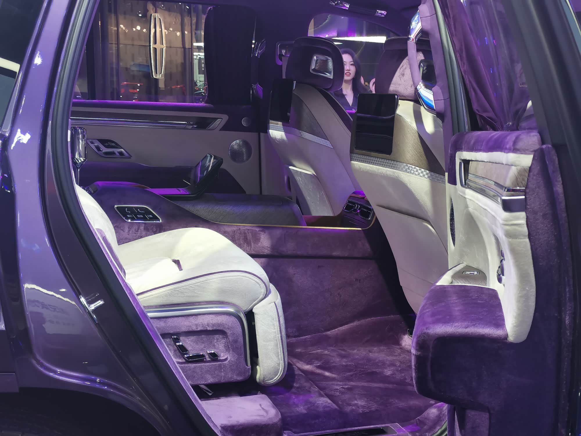 侧面的身形十分漂亮,轴距很大,具体参数当时没有留意,光顾着欣赏和拍照了,多辐条轮毂,尺寸应该在21英寸,内饰的颜色和车身一样搭配,均为紫色,翻毛皮包裹的方向盘,摩擦力和质感更强,液晶仪表和中控屏均为悬浮屏,中控下方还有一排钢琴键式的实体按键,变速杆操作台部分也有很多实体按键,可见为了突出豪华感和驾驶操作感受,长城也费心了。
