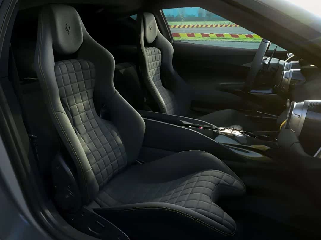 内饰方面,新车整体上延续了 812 Superfast的设计,保留了主要的仪表盘和门板的界面造型。有变动的内饰元素主要是经过重新设计的门板(有减重),并在中控区域新增了H型架构,赋予座舱更运动的风格。