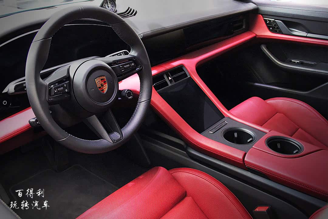 尾灯内部采用玻璃材质的贯穿式灯带以及玻璃质感的“Porsche”标识,提升尾部精致感的同时拉宽了整体视觉宽度。