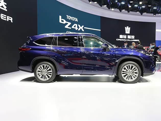 来到侧面,我们没有拿到皇冠陆放的车辆数据,但鉴于它是汉兰达的兄弟车型,两个车型尺寸应该相同,4950mm/1930mm/1730mm,轴距2850mm的数据还是很OK,翼子板上同样有HYBRID字样,告诉你这是一台搭载2.5L混合动力的版本,油耗低。