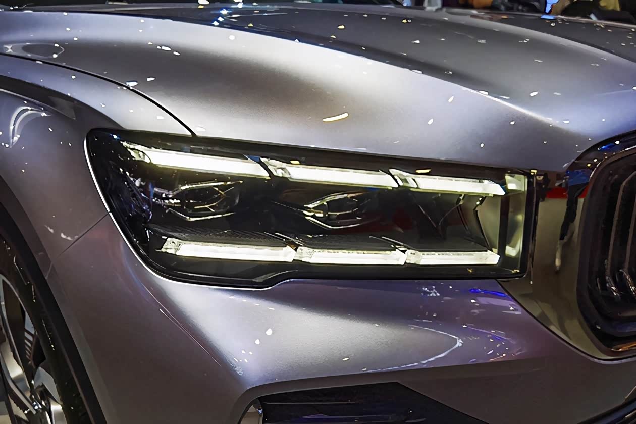 这台新车是基于吉利CMA超级母体平台打造的全新SUV,采用了家族最新设计语言,前脸内凹的直瀑式进气格栅有着沃尔沃的气质,琴键质感的镀铬格栅,也采用巴斯夫高光ASA材质,适应全球气候,更耐光耐热耐老化,格栅内部采用的是吉利黑标LOGO。