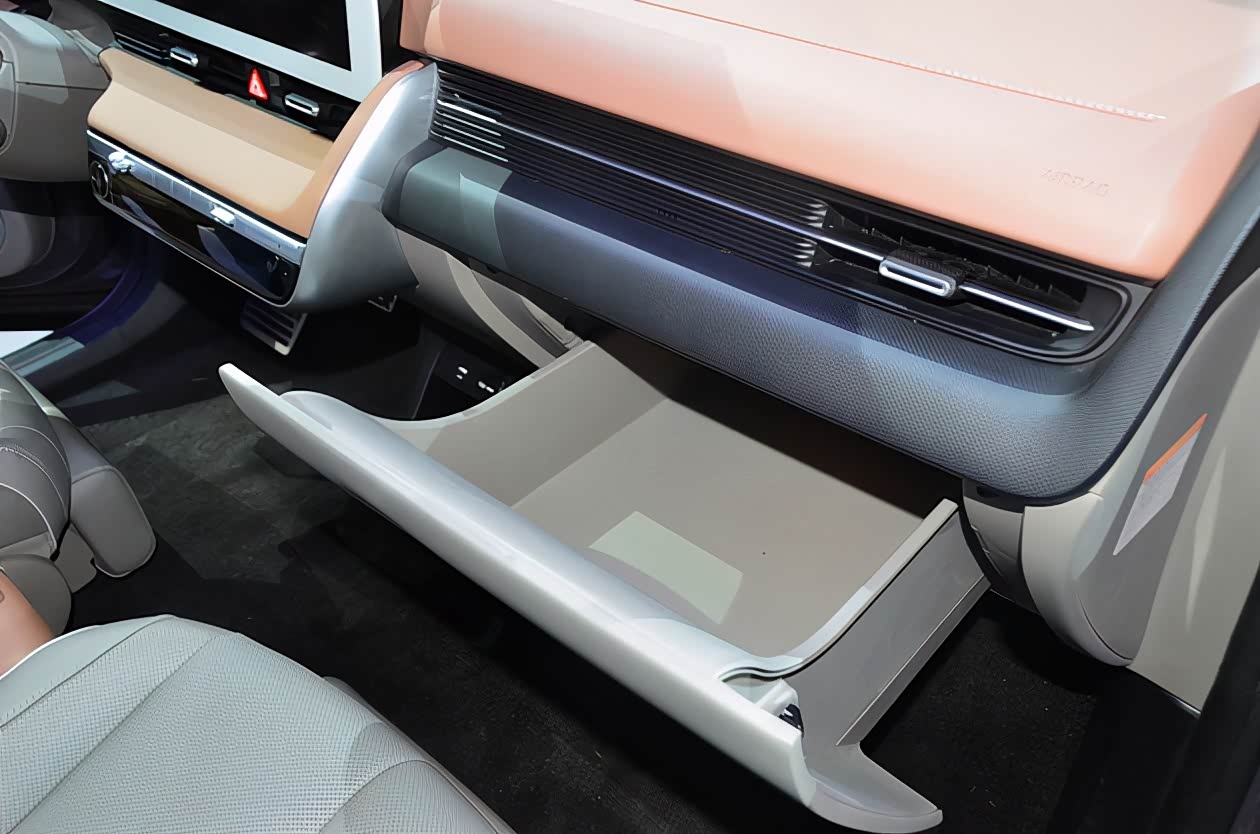 有意思的是,新车的喇叭与连屏融为一体,有点像家庭电脑旁边的音响,也是当下车型少有的设计,这款车的手套箱也是采用的一种推拉的打开方式,像开抽屉一样,不得不说的确令人感觉更像家一样。