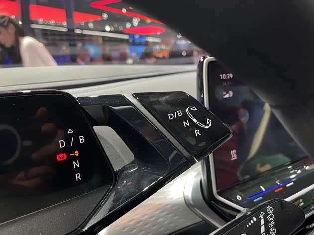 新车最新潮的地方就是电子挡把与5.3英寸的悬浮式液晶仪表盘连为一体的设计,科技感十足。挡把集成于液晶仪表盘的右侧,造型独特。用户通过转动端部实现换挡,仪表盘右方也可显示当前挡位。